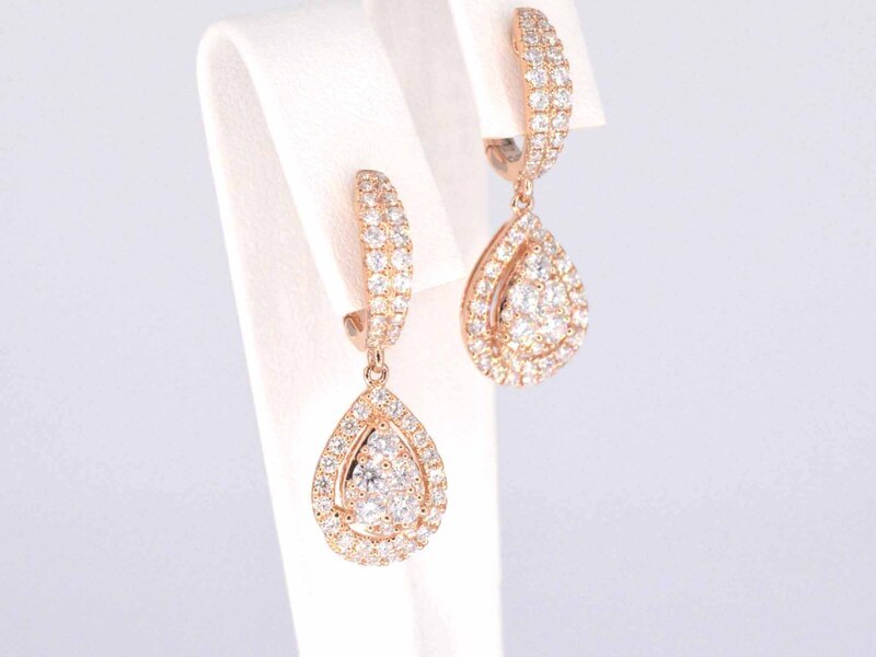 Product: Rosegouden druppelvormige oorhangers met briljant geslepen diamanten Specificaties: Diamant: Natuurlijk Slijpvorm: Briljant geslepen Gewicht (carat): 1.75 carat Kleur: F-G Zuiverheid: VS Slijpkwaliteit: Zeer mooi Juweel: Oorhanger Gewicht: 6.1 gram Afmetingen/lengte: 2.8 x 1 cm Materiaal: 18K goud (750) rosegoud Conditie: Nieuw Verpakking: Luxe sieradendoos Toelichting: De kwaliteit is overgenomen van het rapport behorend bij item. De waardebepaling is een beoordeling van een gecertificeerde diamantair, gebaseerd op consumentenprijzen. Consumentenprijs: € 10.658,-