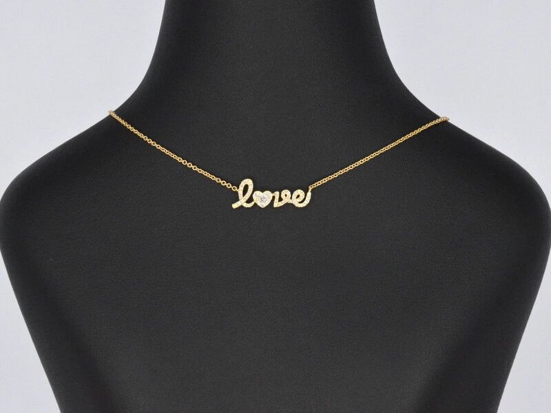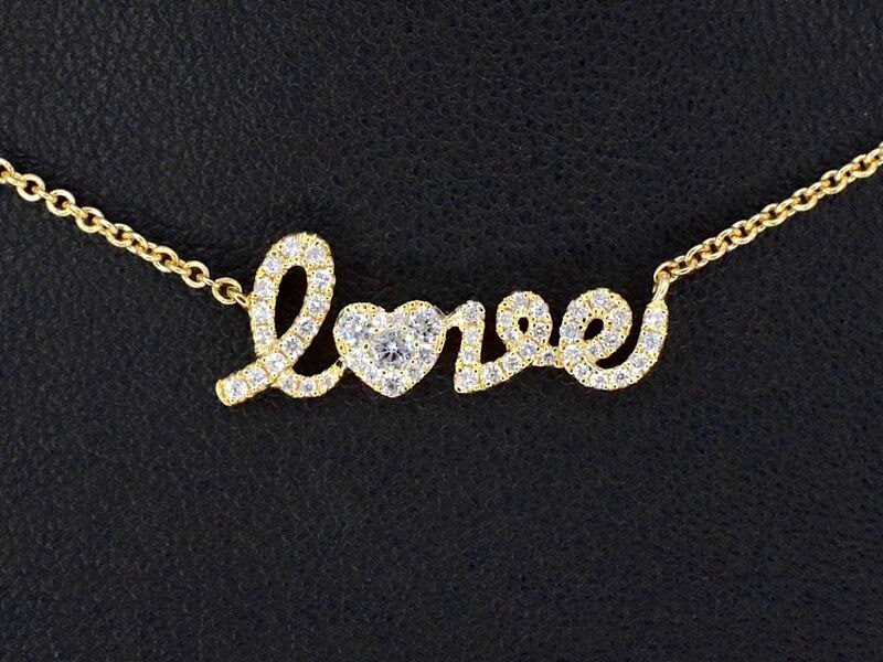 Product: Gouden 'love' collier met diamanten Specificaties: Diamant: Natuurlijk Aantal: 52 stuks Slijpvorm: Briljant geslepen Gewicht (carat): 0.50 carat Kleur: F-G Zuiverheid: VS Slijpkwaliteit: Zeer mooi Juweel: Ketting Gewicht: 4.1 gram Afmetingen/lengte: 40 cm Materiaal: 18K goud (750) Conditie: Nieuw Verpakking: Luxe sieradendoos Toelichting: De kwaliteit is overgenomen van het rapport behorend bij item. De waardebepaling is een beoordeling van een gecertificeerde diamantair, gebaseerd op consumentenprijzen. Consumentenprijs: € 4.673,-