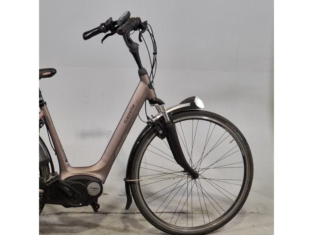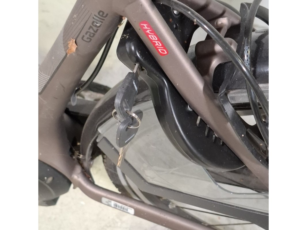Merk: Gazelle Product: Elektrische damesfiets Afmeting: Framemaat ca. 49 cm BouwJaar: 2017 Conditie: gebruikt Specificaties: Geveerde voorvork en zadelpen 8 versnelllingen Inclusief fietscomputer en accu. Afgelezen tellerstand 4336. Inclusief fiets sleutels. Acculader en sleutel accu ontbreken. Staat op slot.