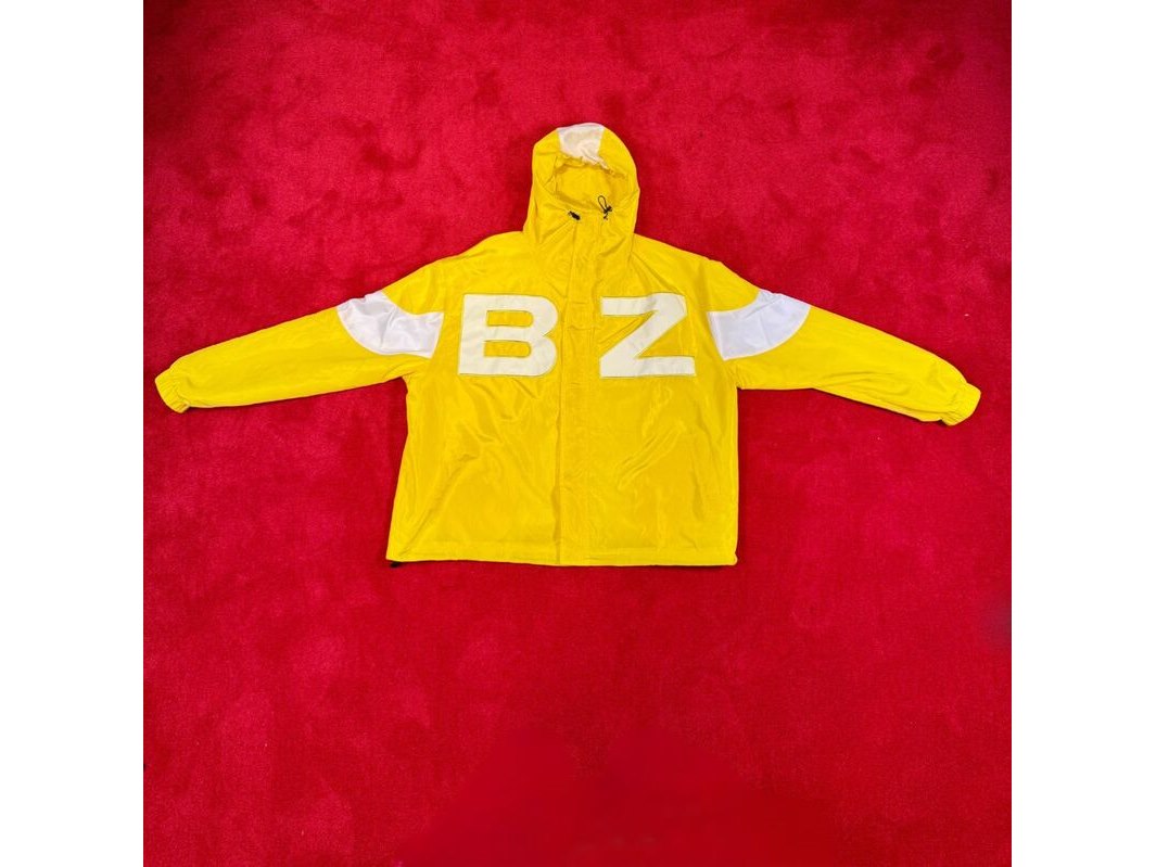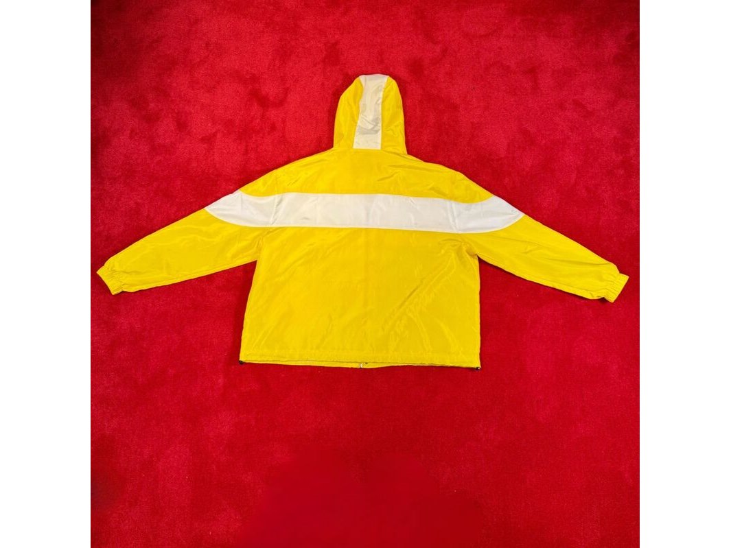 Merk: Bankzitters Product: Jas Kleur: geel Materiaal: Polyester Afmeting: XL Conditie: gebruikt Specificaties: Custom windbreaker met glow in the dark branding