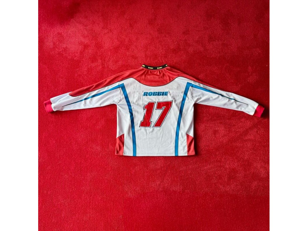 Jersey, bankzitters, ziggo dome world tour, rood, wit, gedragen door robbie van de graaf| maat m