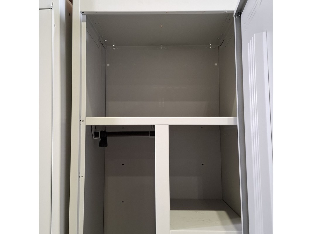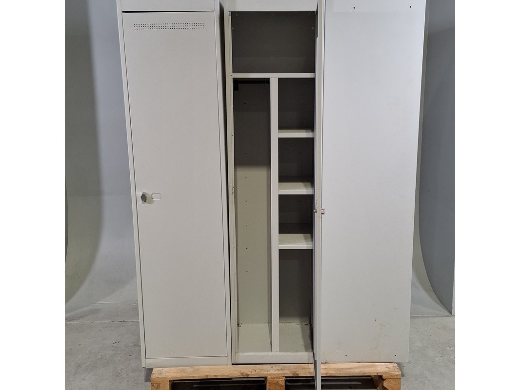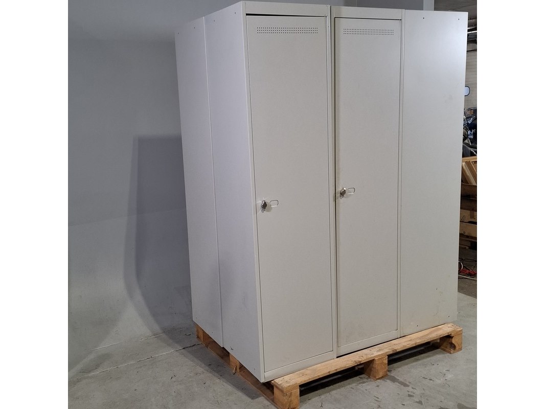 Product: Lockerkast Afmeting: Hxbxd ca. 180x46x46 cm Conditie: Gebruikt Specificaties: De foto betreft een voorbeeldfoto, de staat kan afwijken. De kasten hebben diverse beschadigingen. Exclusief pallets.