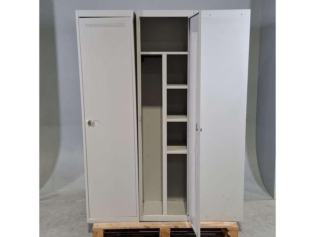 Product: Lockerkast 1 deur locker Afmeting: Hxbxd ca. 180x46x46 cm Conditie: Gebruikt Specificaties: De foto betreft een voorbeeldfoto, de staat kan afwijken. De kasten hebben diverse beschadigingen. Exclusief pallets.