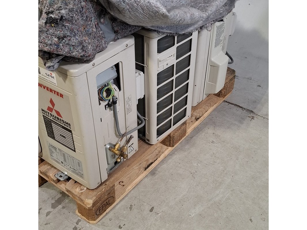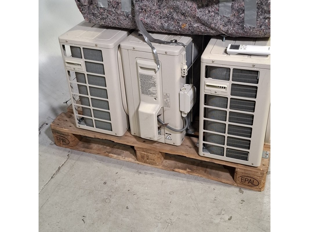 Merk: Mitsubishi Product: Airconditioning Conditie: Gebruikt Specificaties: Bestaande uit o.a. 3x Mitsubishi buitenunit o.a. SRC35ZS-W2 3x Mitsubishi binnenunit o.a. SRK35ZS-WF 6x Opstellingsbalken Technische staat en compleetheid onbekend. Exclusief pallet.
