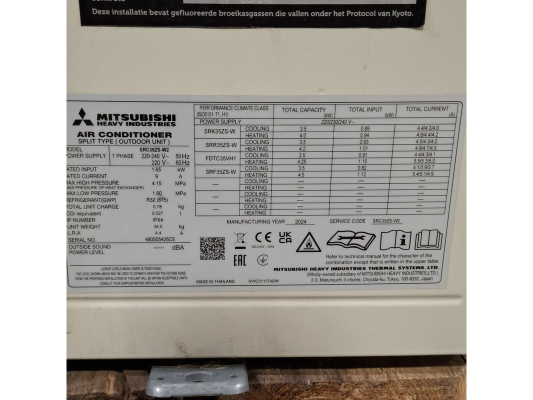 Merk: Mitsubishi Product: Airconditioning Conditie: Gebruikt Specificaties: Bestaande uit o.a. 3x Mitsubishi buitenunit o.a. SRC35ZS-W2 3x Mitsubishi binnenunit o.a. SRK35ZS-W 6x Opstellingsbalken Technische staat en compleetheid onbekend. Exclusief pallet.