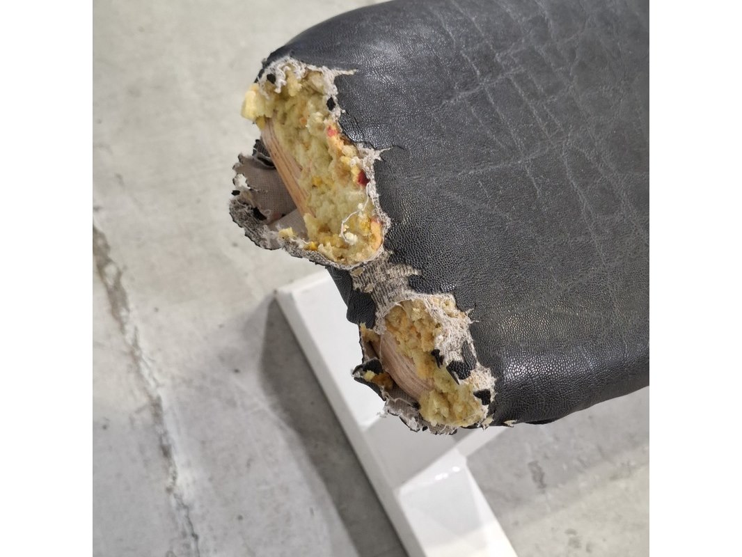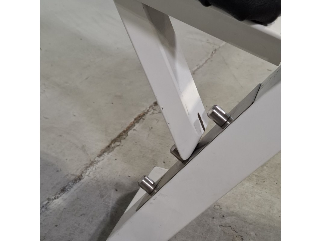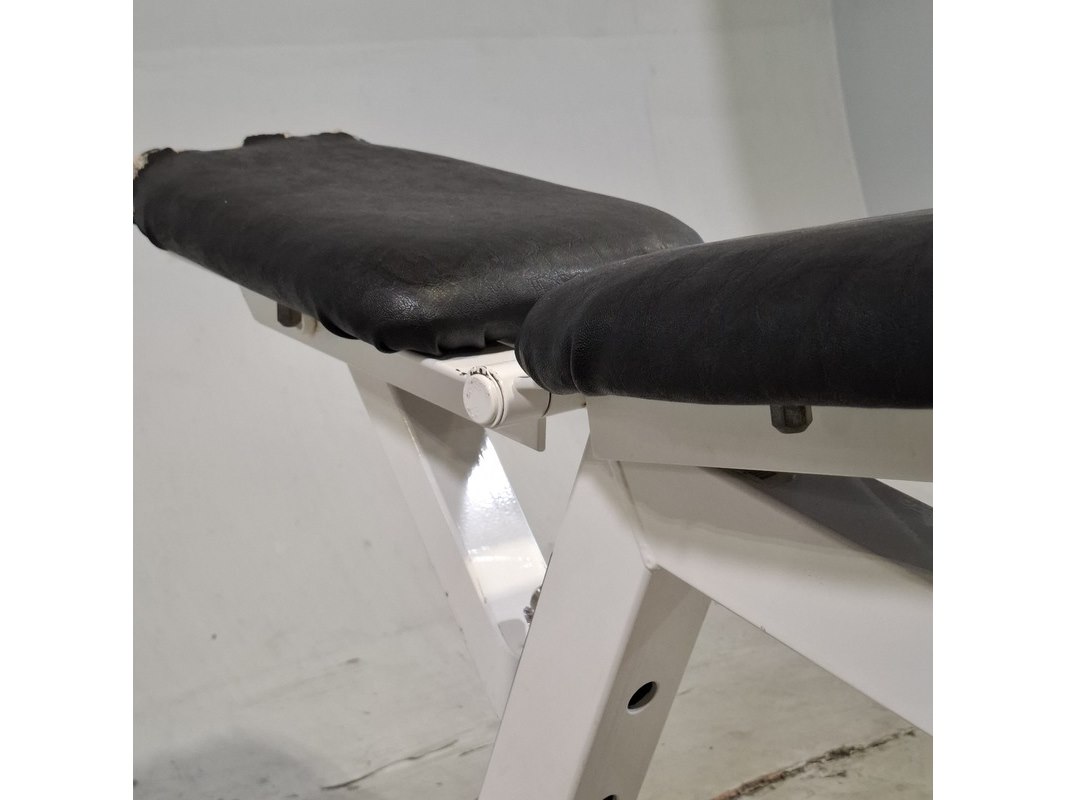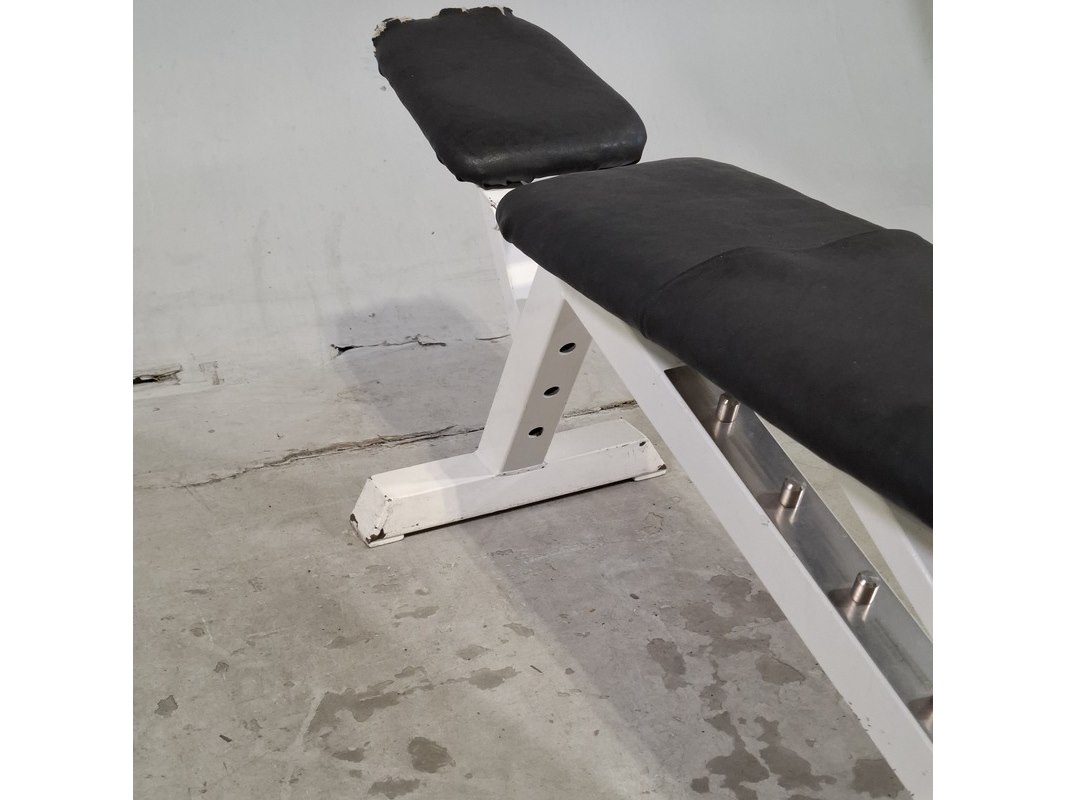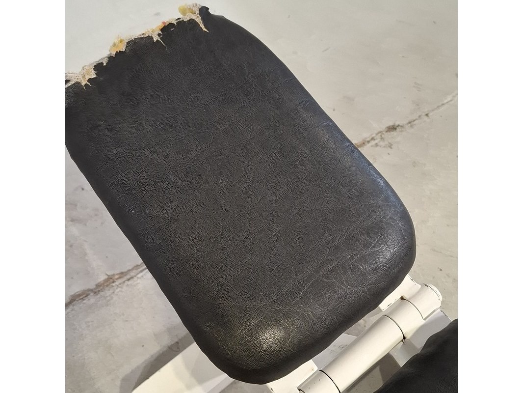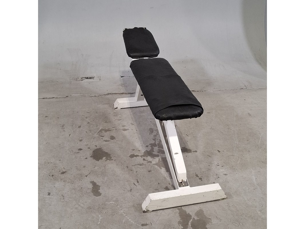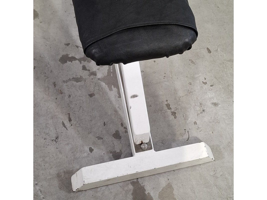 Merk: Grun Sport Product: Halterbank Afmeting: Lengte ca. 130 cm. Conditie: gebruikt Specificaties: Het bankje heeft diverse beschadigingen en gebreken