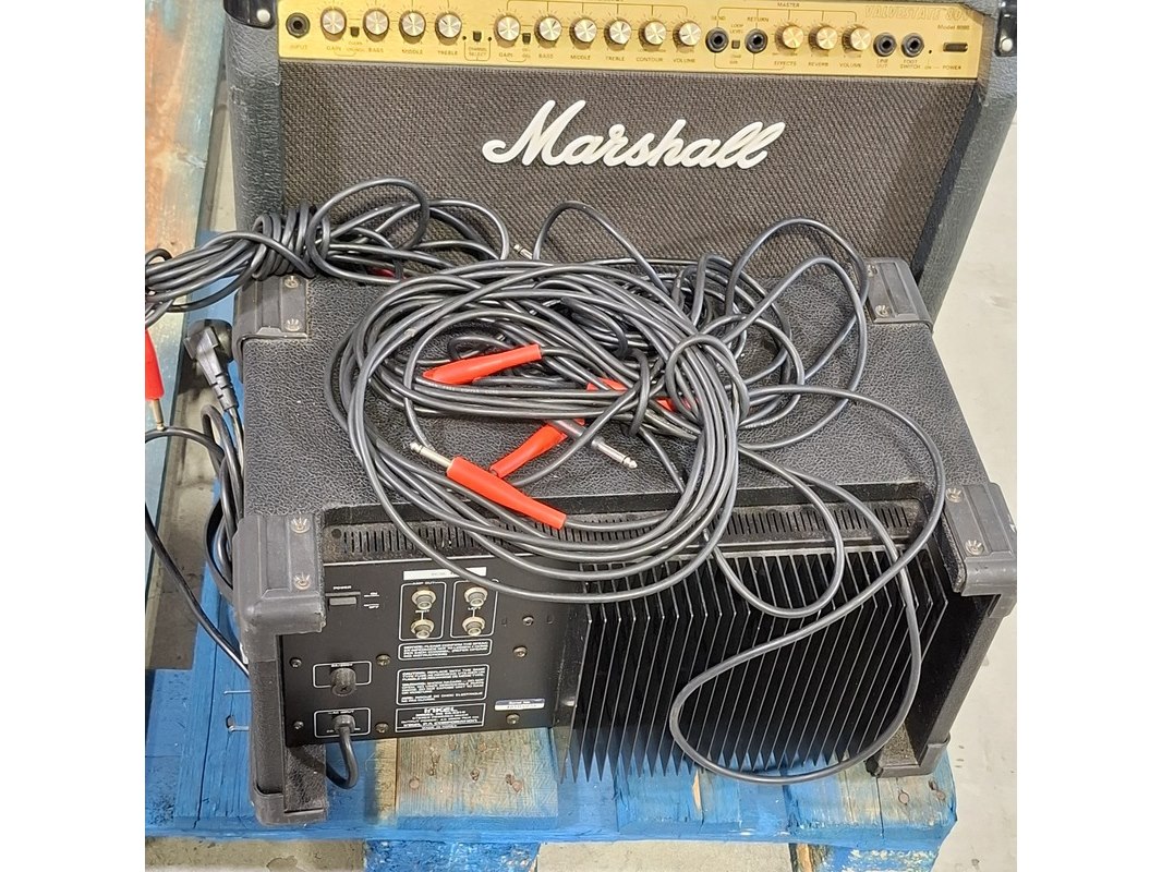 Merk: o.a Marshall, Inkel Product: Diverse audioapparatuur Afmeting: Diverse maten Conditie: gebruikt Specificaties: Bestaande uit: 1x Marshall 8080 1x Inkel CA-6210 1x Laney Linebacker 120B Inclusief kistje met diverse kabels. Technische staat en compleetheid onbekend Exclusief pallet