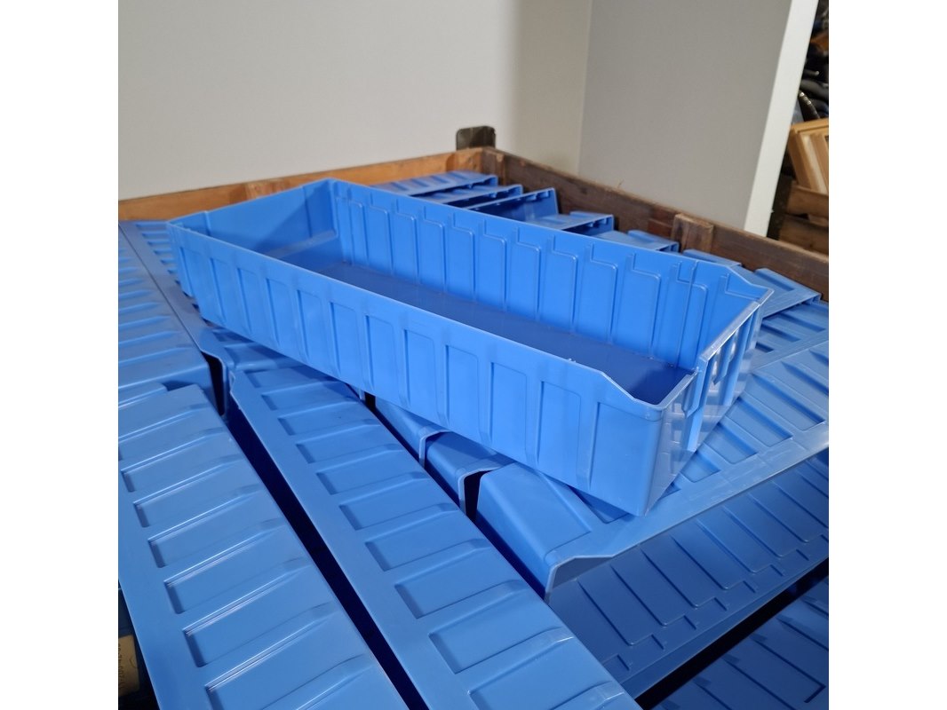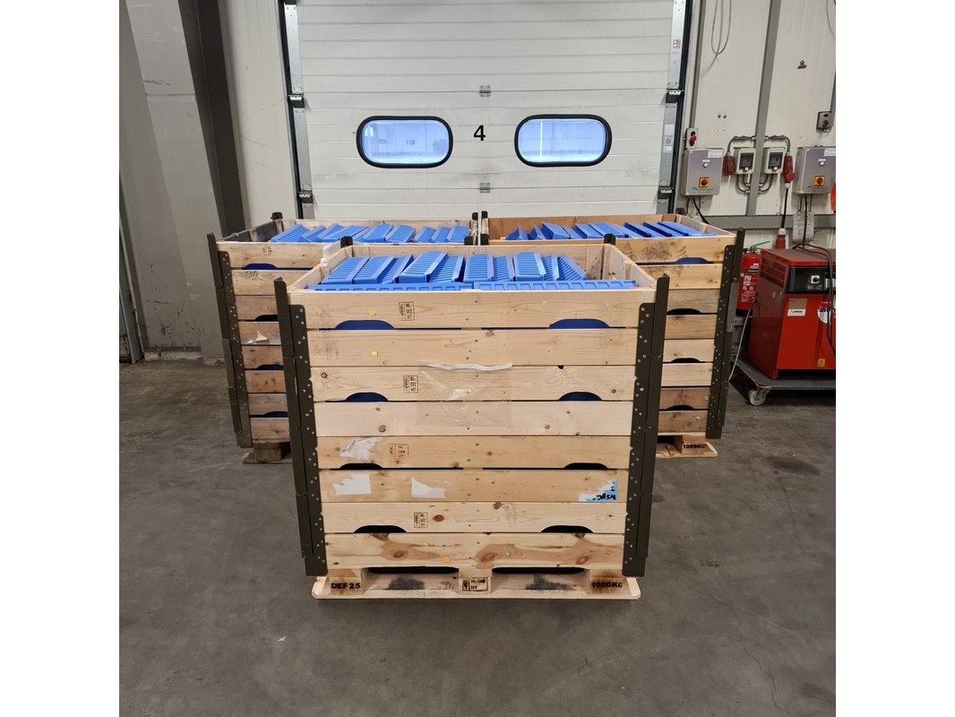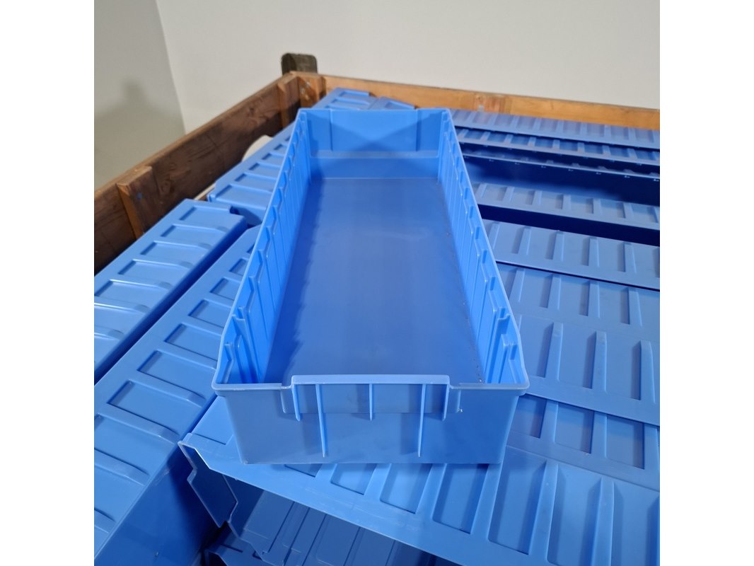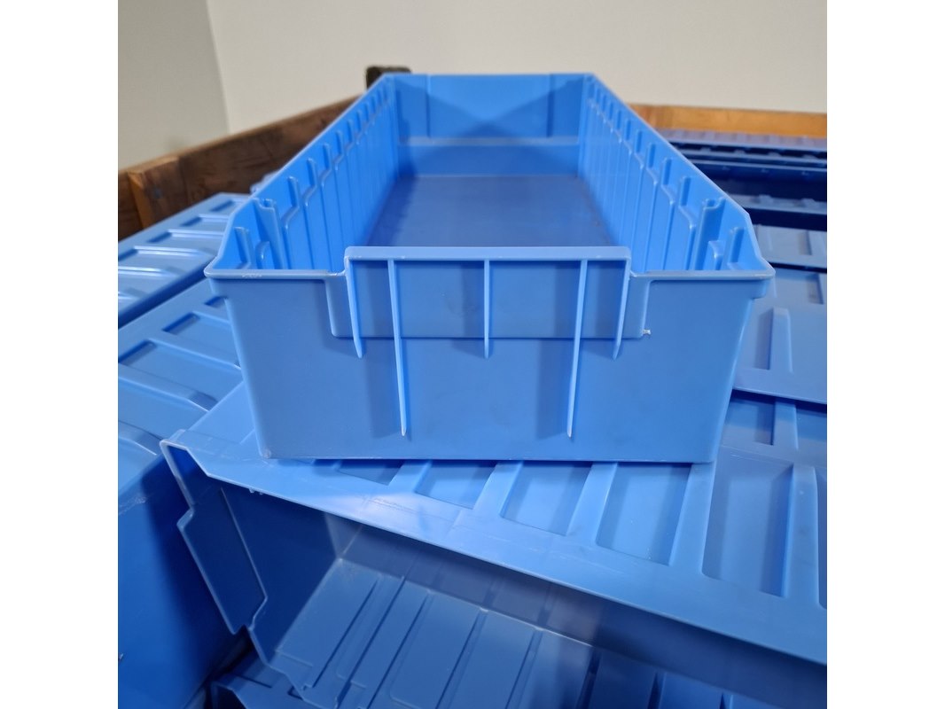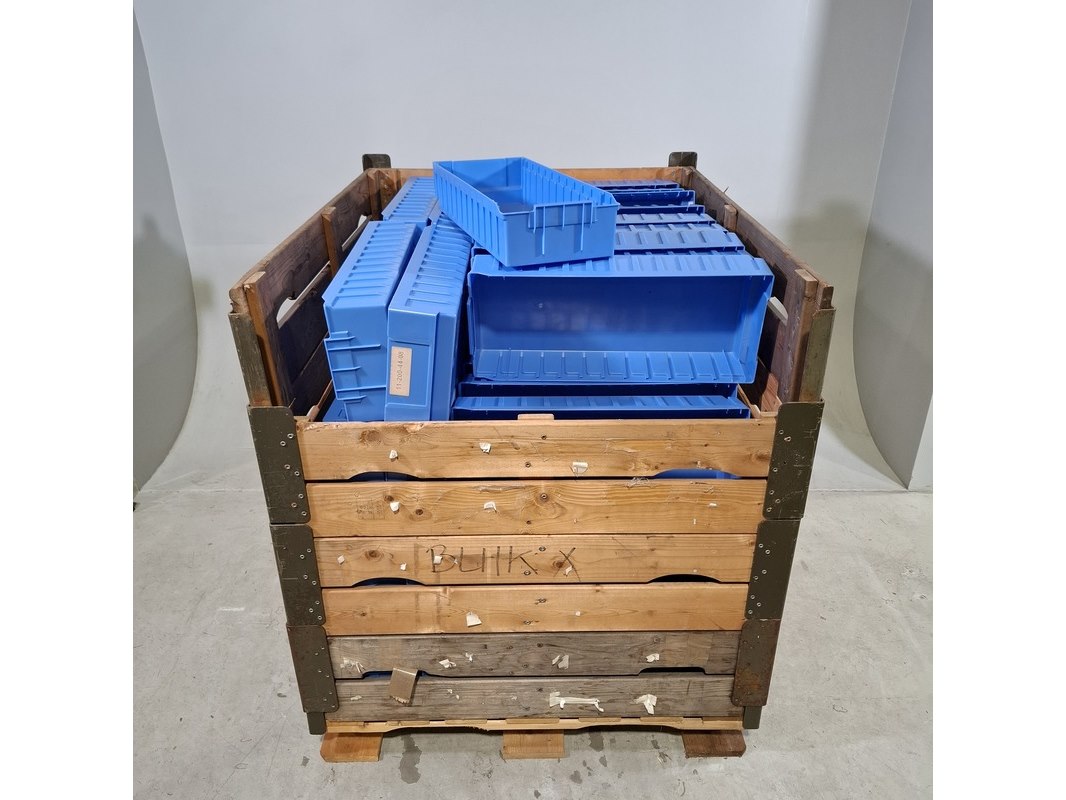 Product: Partij magazijnbakken Afmeting: LxBxH ca. 58,5x24x11,5 cm. Conditie: gebruikt Specificaties: De foto betreft een voorbeeldfoto, de staat kan afwijken. Bestaande uit 3x palletkist Technische staat en compleetheid onbekend. Exclusief palletkist.