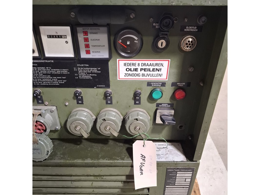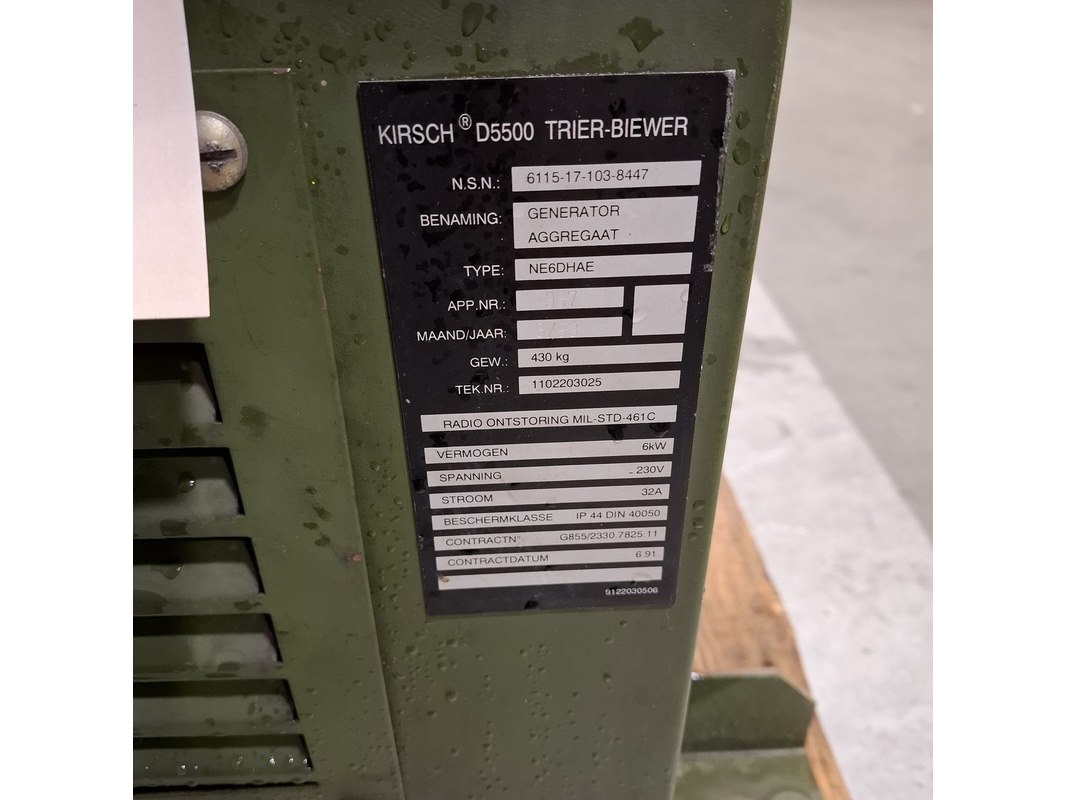 Merk: Kirsch Product: Aggregaat Afmeting: LxBxH ca. 142x66x85 cm. BouwJaar: 1993 Conditie: gebruikt Specificaties: 6 kW Gewicht ca. 430 Kg. 32A Exclusief sleutels Technische staat en compleetheid onbekend Exclusief pallet