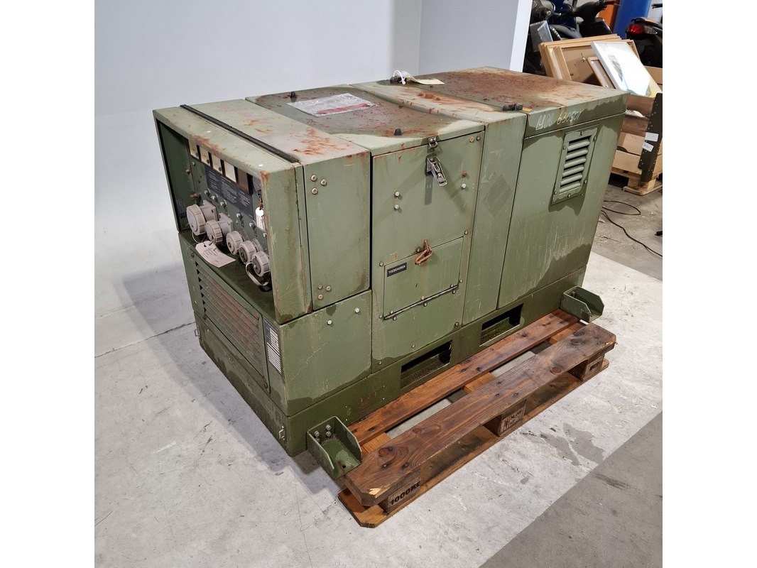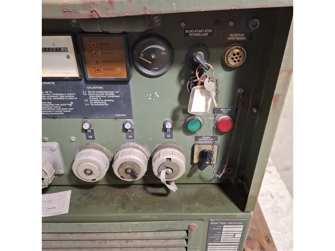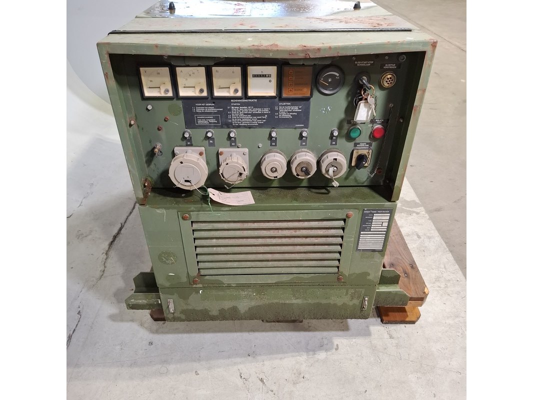 Merk: Kirsch Product: Aggregaat Afmeting: LxBxH ca. 142x66x85 cm. BouwJaar: 1993 Conditie: gebruikt Specificaties: 6 kW Gewicht ca. 430 Kg. 32A Exclusief sleutels Technische staat en compleetheid onbekend Exclusief pallet