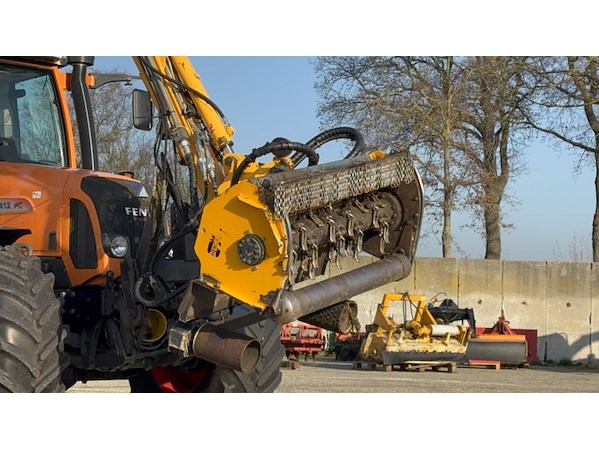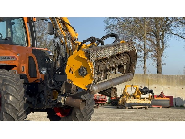 Merk: FENDT Product: Land- of bosbouwtrekker BouwJaar: 2009 Conditie: Gebruikt Specificaties: Basiskenmerken Kenteken: T-66-BPT Afgelezen tellerstand: 11.525 h. ( de vario is bij 10402h. vervangen ) Datum eerste toelating: 30 juni 2009 Brandstof: Diesel Motor & Vermogen Motorcode/type: Deutz Aantal cilinders: 4TI (turbo & intercooler) Cilinderinhoud: ca. 4.038 cm³ Max. motorvermogen: ca. 110 pk Transmissie & Prestaties Transmissie: FENDT VARIO (stepless) Rijsnelheidsbereik: 0,02 - 50 km/u Max. rijsnelheid: 40/50 km/u Aandrijving: 4WD Hydrauliek & PTO Hydraulische pompcapaciteit: 76 (110) l/min Aftakas toerental: 540/750/1.000 tpm Maten & Gewichten Totale hoogte (met cabine) : 2.890 mm Totale lengte: 4.240 mm Totale breedte: 2.420 mm Totaalgewicht: 5.680 kg Bandenmaat (voor) : 540/65 R24 Bandenmaat (achter) : 600/65 R38 Klepelmaaier Merk: HERDER Type: KMU 130 Serienummer: 1220.1257.0001 Bouwjaar: 2023 Massa: 509 kg Operationeel uit bedrijf gehaald, klaar voor gebruik.