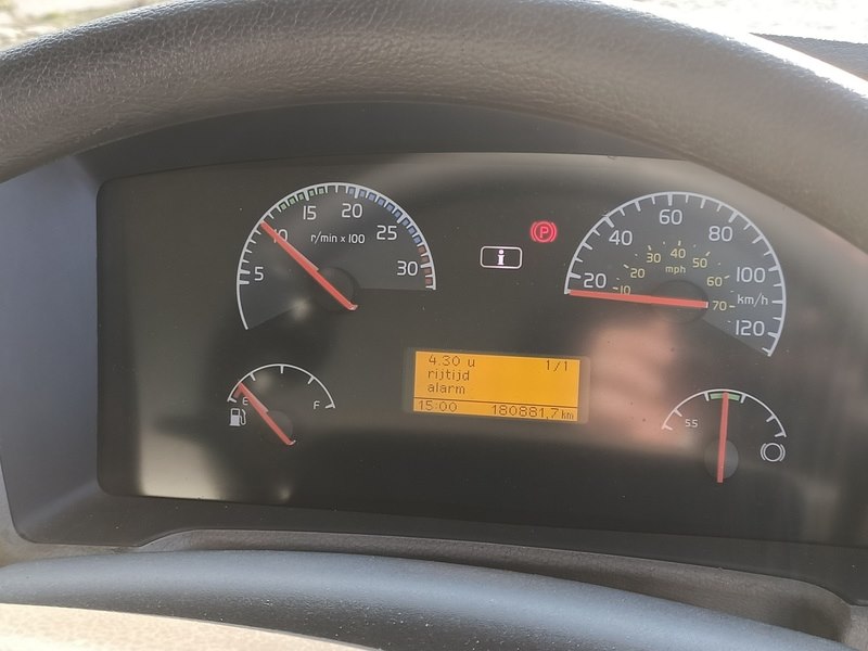 Merk: VOLVO Product: Vrachtwagen BouwJaar: 2009 Conditie: Gebruikt Specificaties: Basiskenmerken Kenteken: BV-ZL-05 Chassisnummer (VIN) : YV2TBL0A59B545524 Afgelezen tellerstand: 180.881 km Datum eerste toelating: 20 mei 2009 APK vervaldatum: 22 september 2026 Brandstof: Diesel Motor & Milieu Motorcode: D7E280 EC06B Aantal cilinders: 6 Cilinderinhoud: 7.146 cm³ Max. vermogen: 206 kW / 280 pk Emissiecode: Euro 5 Maten & Gewichten Lengte: 5.950 mm Breedte: 2.600 mm Hoogte: 4.000 mm Wielbasis: 3.350 mm Massa rijklaar: 8.615 kg Max. massa: 15.000 kg Laadvermogen: 6.485 kg