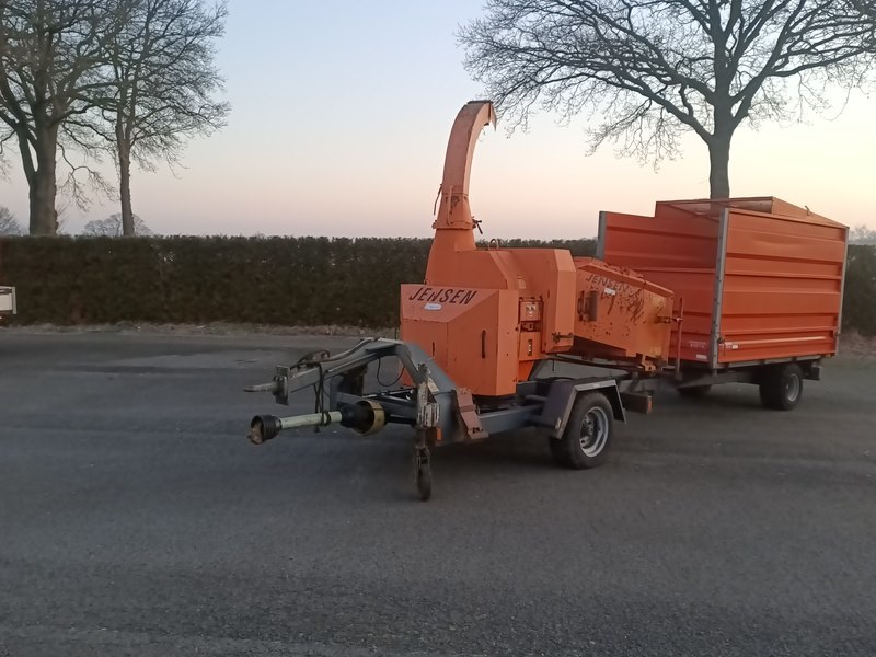 Merk: JENSEN Product: Houtversnipperaar BouwJaar: 2006 Conditie: Gebruikt Specificaties: Basiskenmerken Kenteken: LNB-20-V Serienummer: 22 06 09533 Datum eerste toelating: 30 juni 2006 Technische gegevens Stamdiameter: tot 240 mm Vermogensbehoefte aftakas: vanaf 50 kW Afmetingen invoerkanaal (BxH) : 310 x 240 mm Snipperlengteverstelling: 5-20 mm Aantal messen: 2 Capaciteit: ca. 30 m³/h Inklapbare invoertrechter (BxH) : 1.160 x 800 mm Afmetingen (LxBxH) : 4.800 x 2.300 x 3.100 mm Max. totaalgewicht: 2.100 kg Max. toerental: 1.00 rpm Bedrijfsdruk: 120 bar