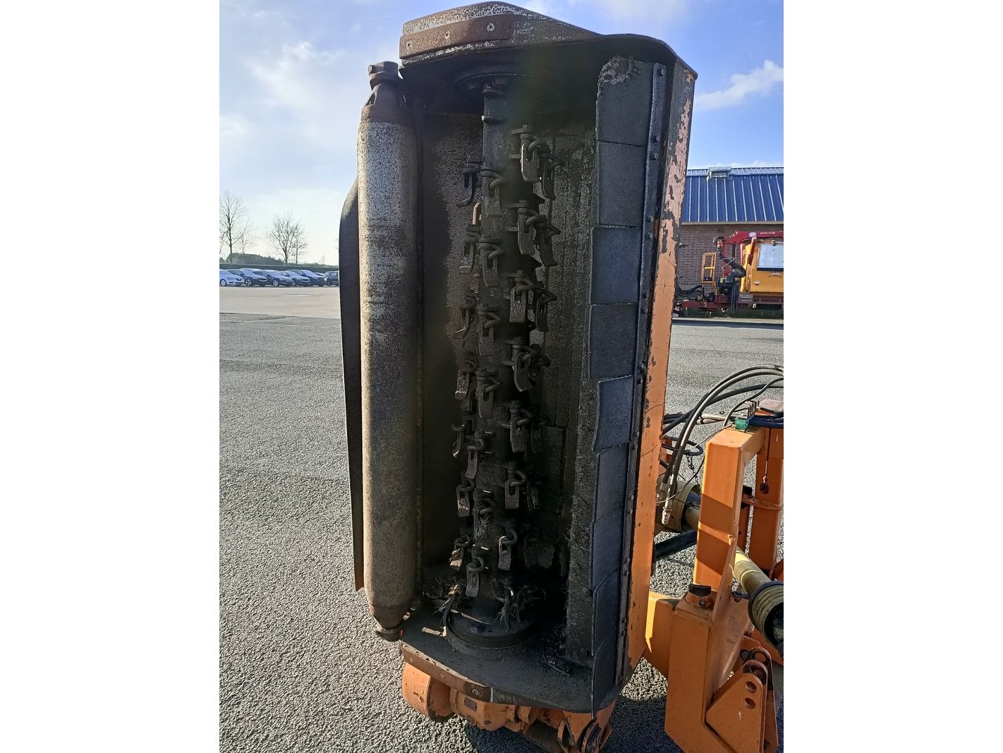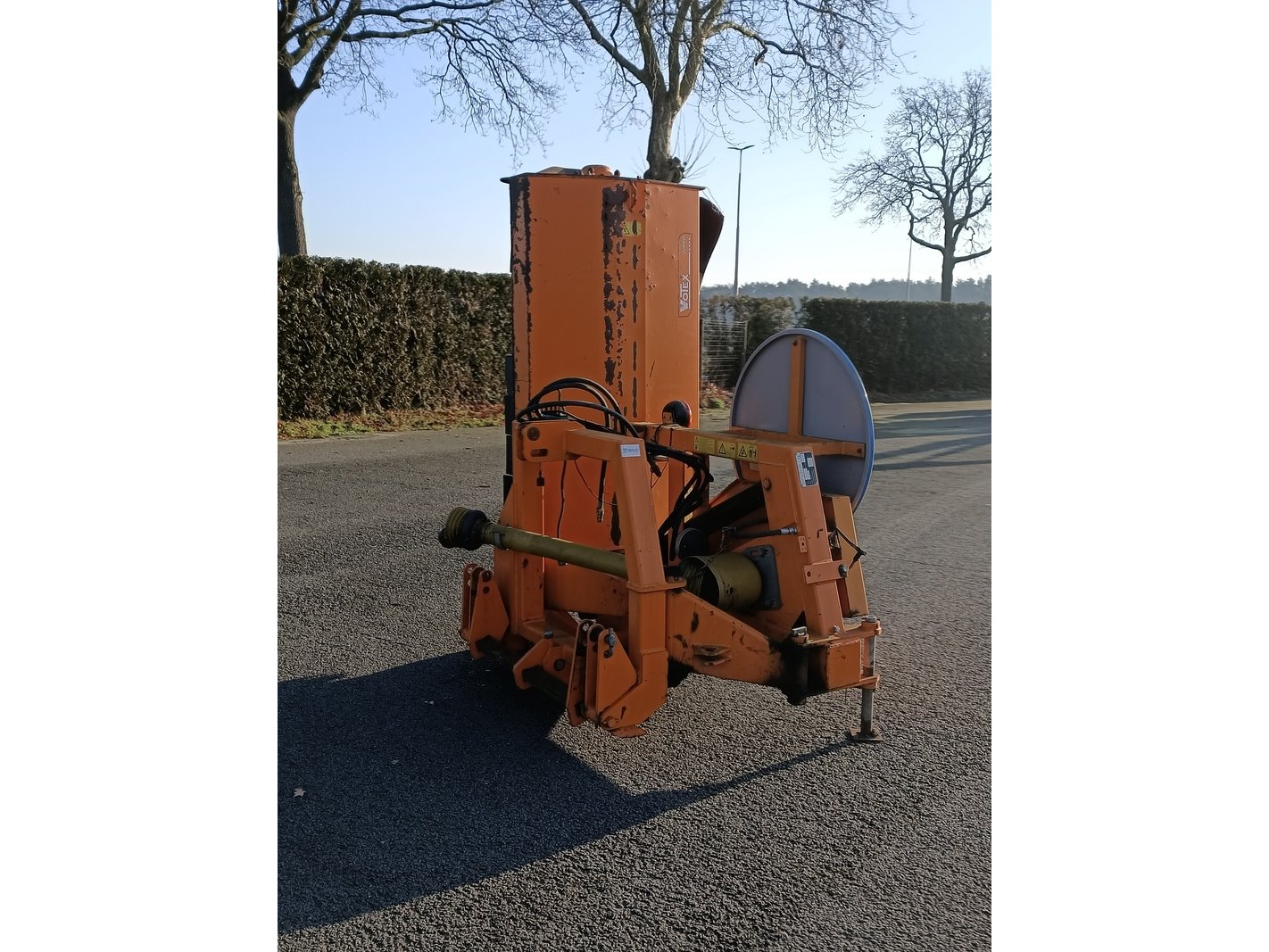 Merk: VOTEX Product: Klepelmaaier BouwJaar: 2008 Specificaties: Basiskenmerken Serienummer: 450320J098 Technische gegevens Massa: 975 kg Nominaal vermogen: 40 kW Max. werkdruk hydrauliek: 180 bar Max. toerental maaimotor: 2.000 min-1