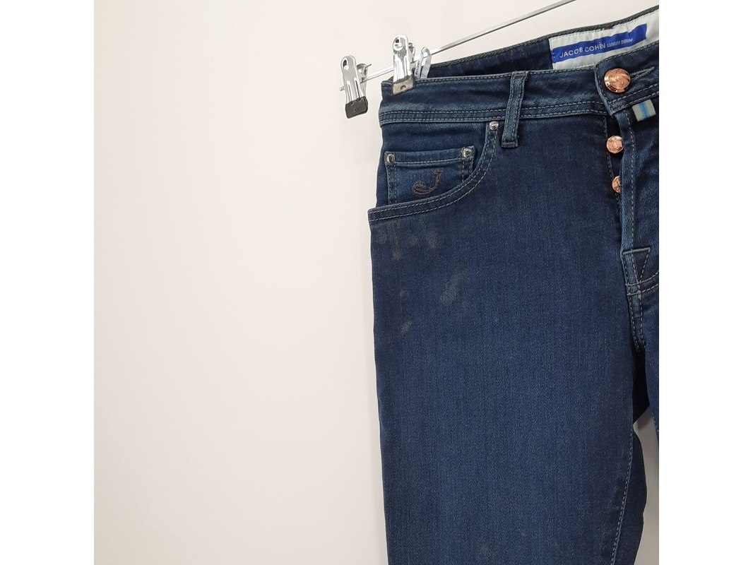 Merk: Jacob Cohën Product: Spijkerbroek, maat 30 Afmeting: maat 30 Specificaties: Broek heeft diverse vlekken.
