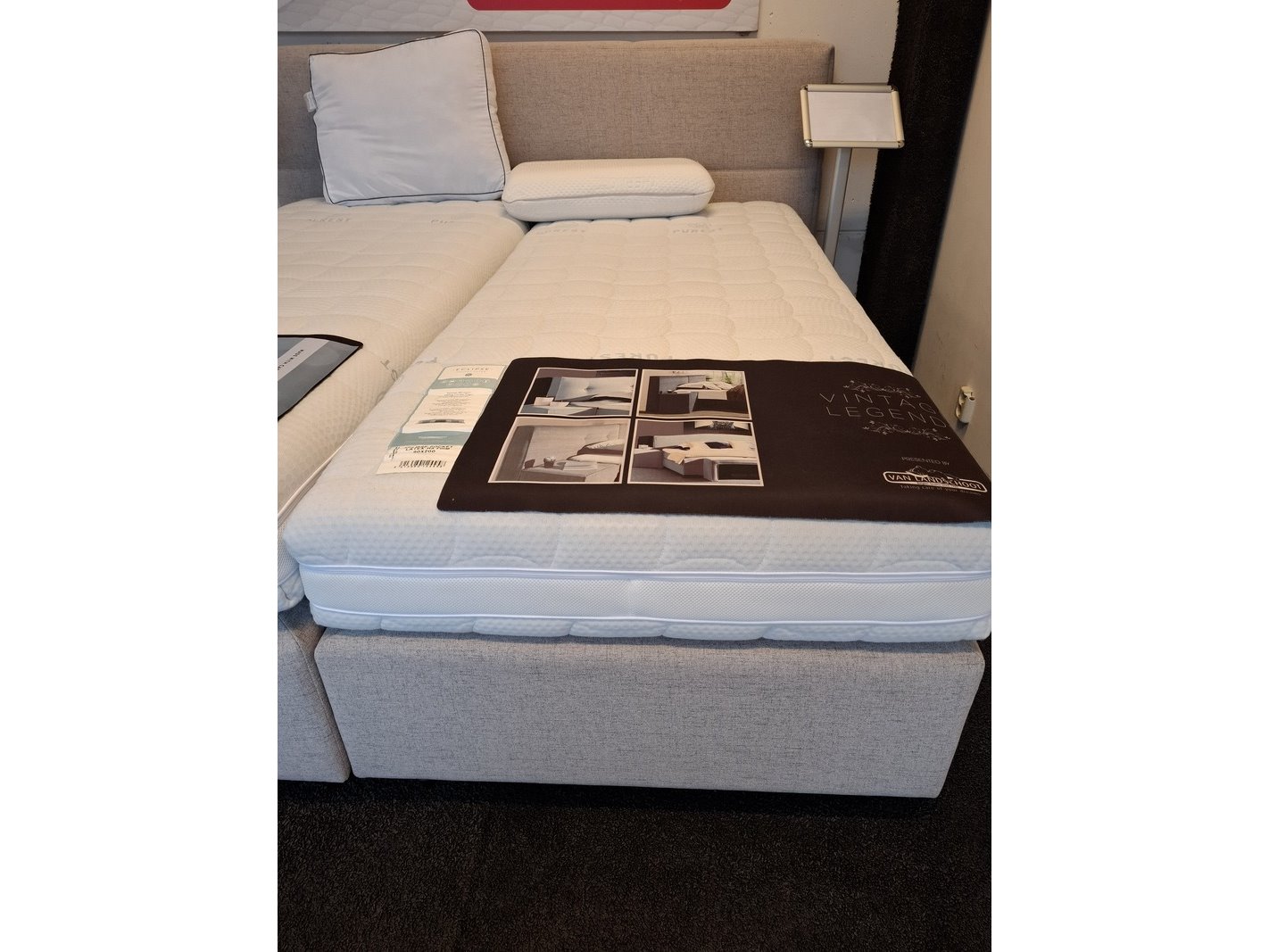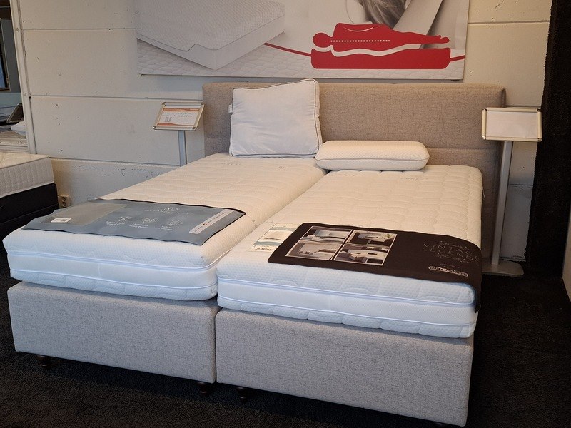 2-persoons boxspring met 2x matras en hoofdbord o.a. van landschoot