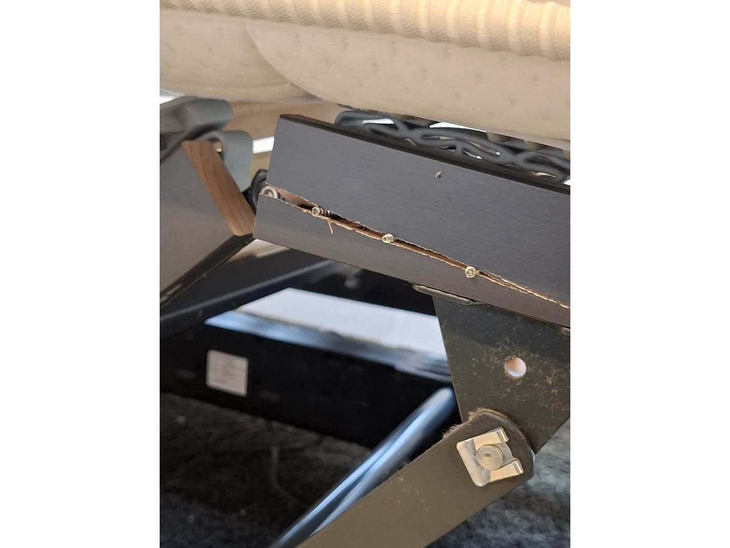 Merk: o.a. van Landschoot Product: Elektrisch verstelbaar lattenbodem met matras Specificaties: lattenbodem lxb ca. 210x80cm matras Ergo Sense classic ca. 200x90cm scheur in houten gedeelte van het frame