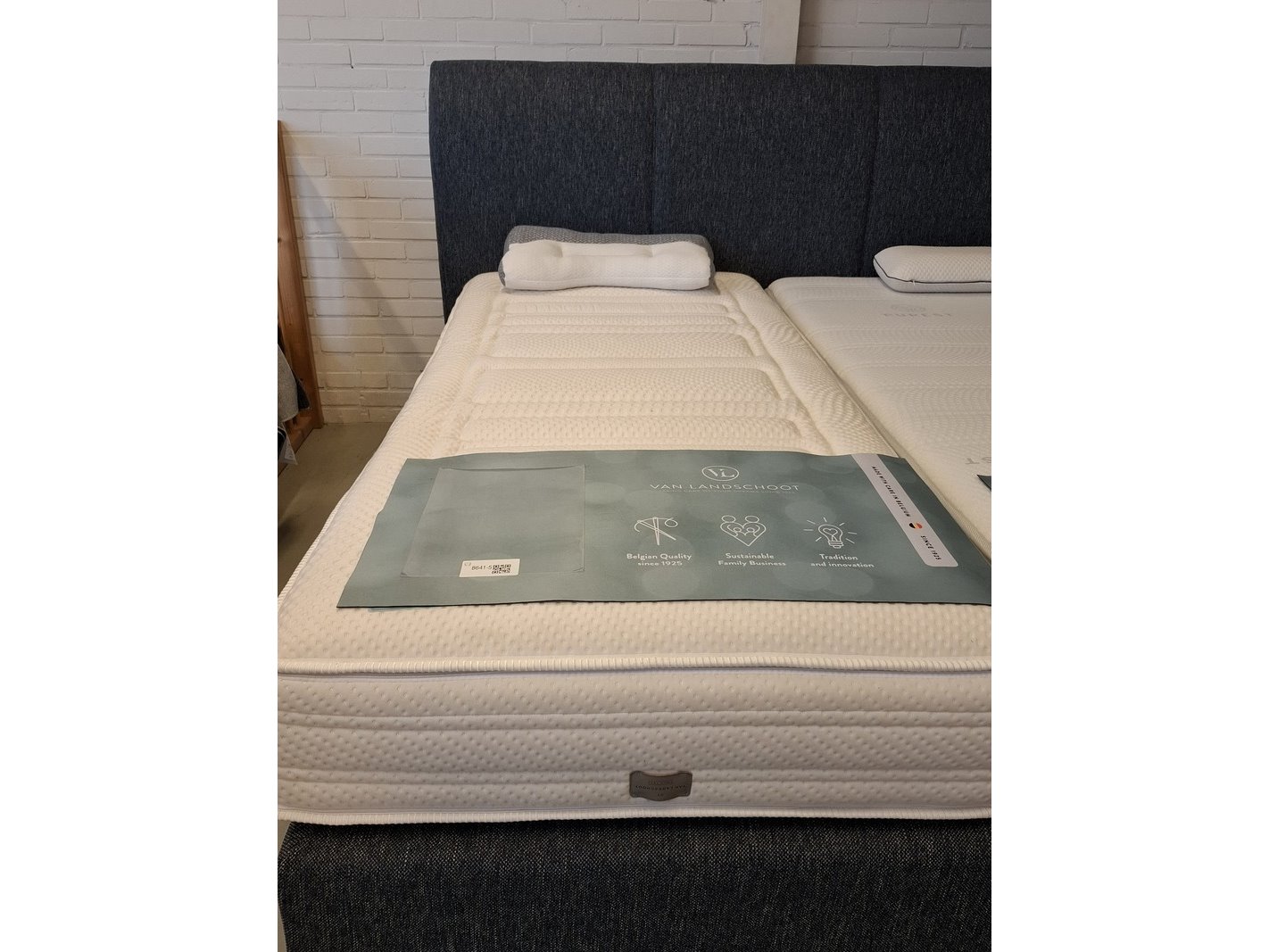 Merk: o.a. van Landschoot Product: 2 Persoons boxspring met hoofdbord Afmeting: lxbxh ca. 200x180x37cm Specificaties: matras ca. 200x90cm, 2 verschillende soorten