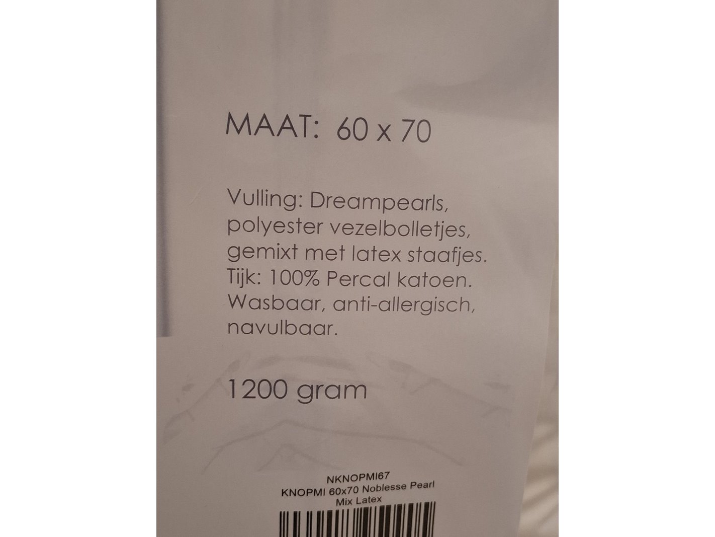 Merk: Noblesse pearl mix Product: Hoofdkussen Afmeting: 60x70cm, 1200 gram