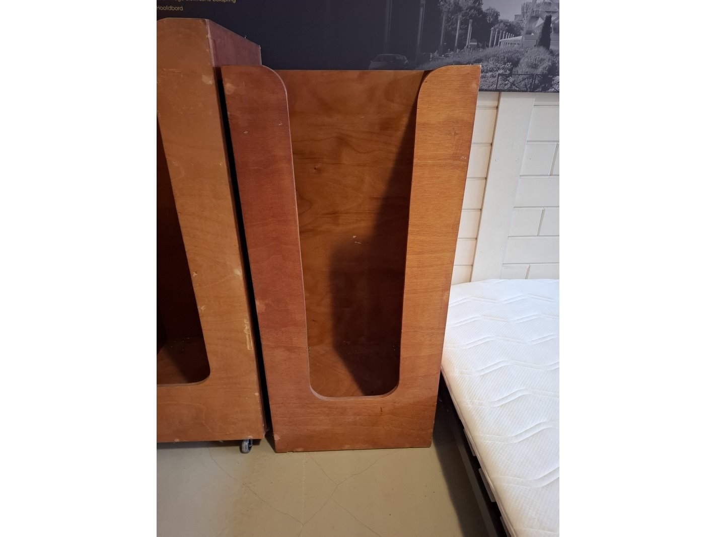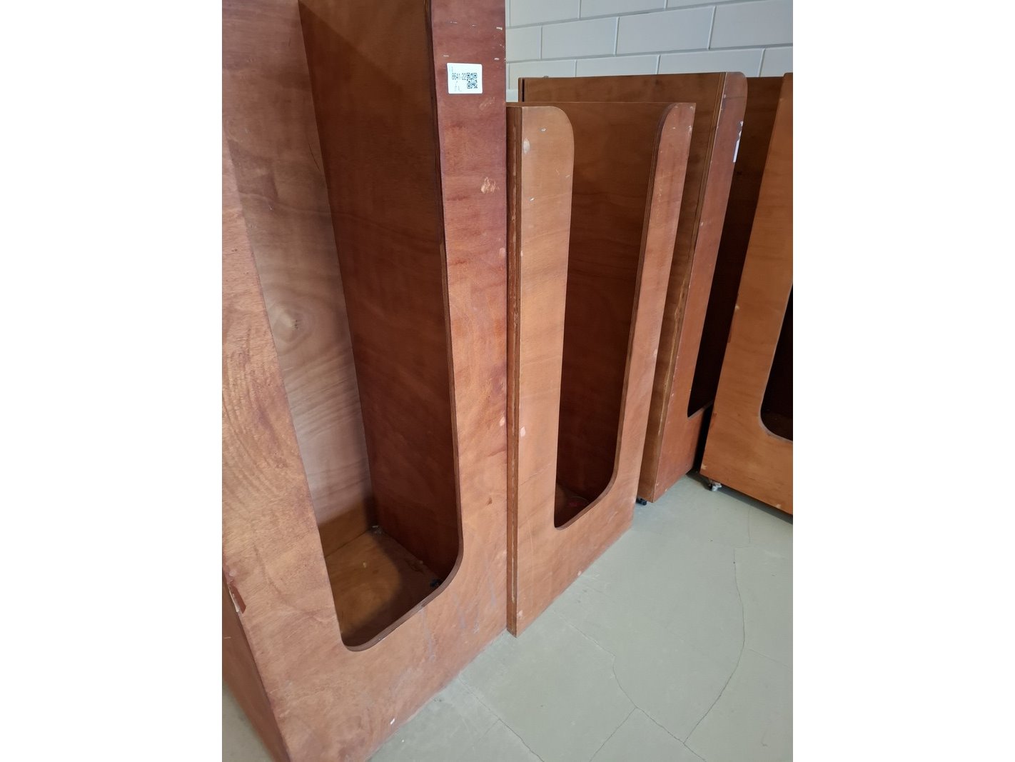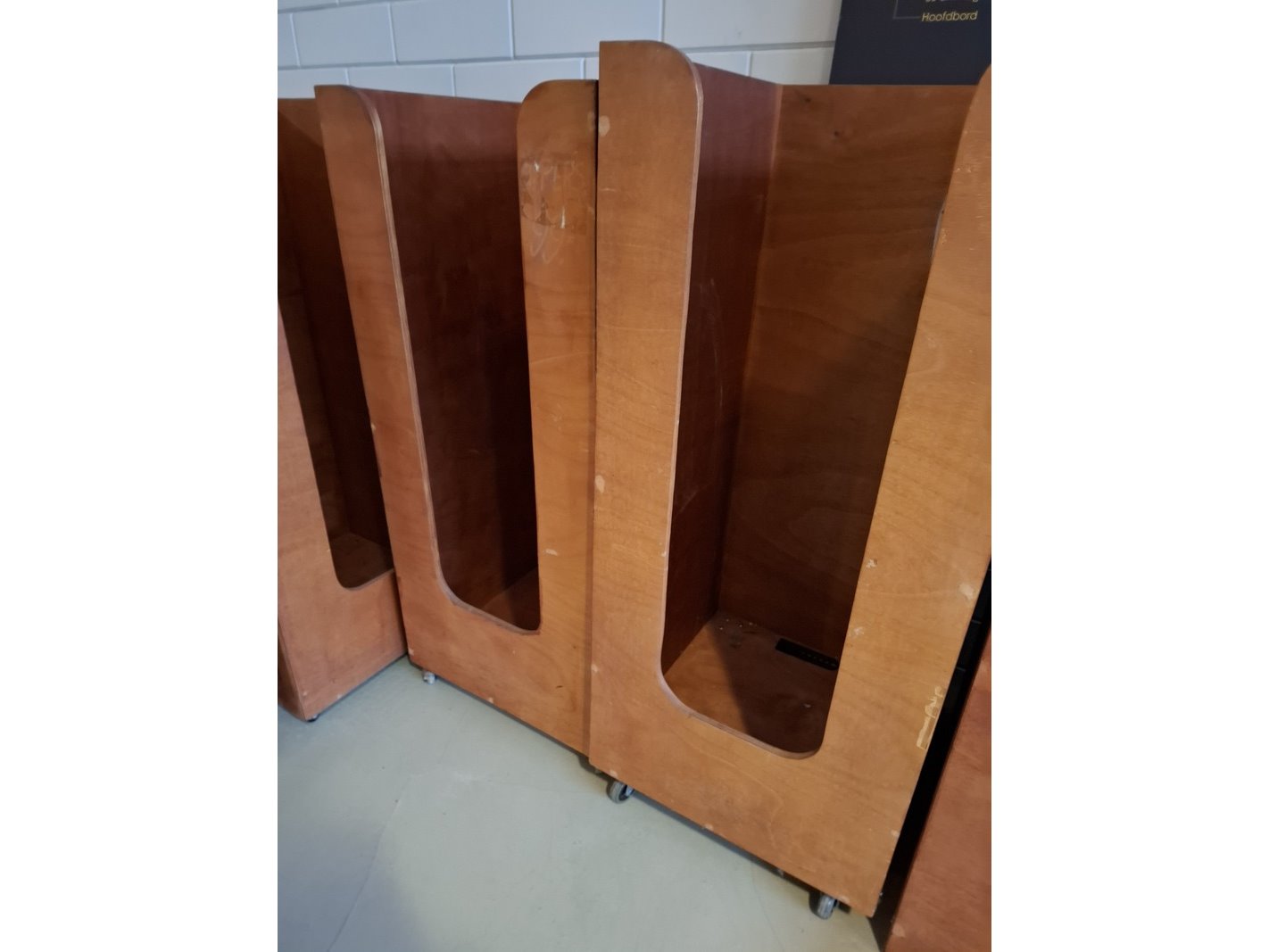 Product: Presentatie box Materiaal: hout Specificaties: 2x verrijdbaar bxd ca. 62x64cm, hoogtes variërend 134-155cm