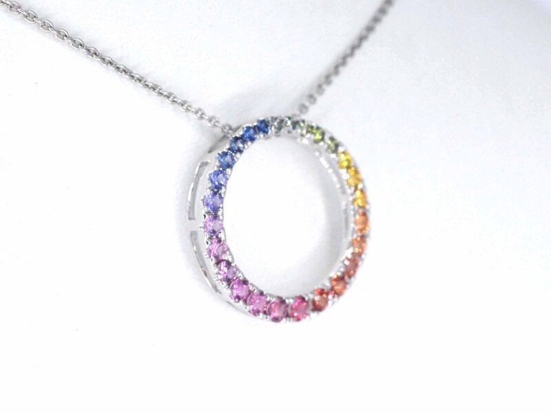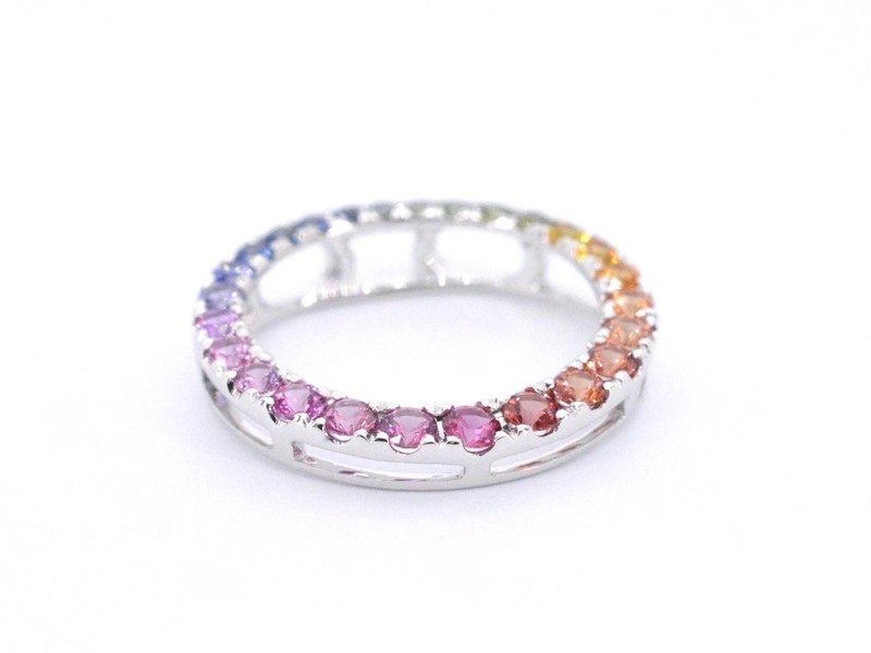 Product: Witgouden hanger met multi colour saffieren in een cirkel gezet Specificaties: Edelsteen: Saffieren Aantal: 26 stuks Slijpvorm: Briljant geslepen Gewicht (carat): 1.20 carat Kleur: Multicolour Slijpkwaliteit: Very good Juweel: Hanger (excl. ketting) Gewicht: 1.8 gram Afmetingen/lengte: 20 mm Materiaal: 18K goud (750) Conditie: Nieuw Verpakking: Luxe sieradendoos Toelichting: De kwaliteit is overgenomen van het rapport behorend bij item. De waardebepaling is een beoordeling van een gecertificeerde diamantair, gebaseerd op consumentenprijzen. Consumentenprijs: € 2.573,-