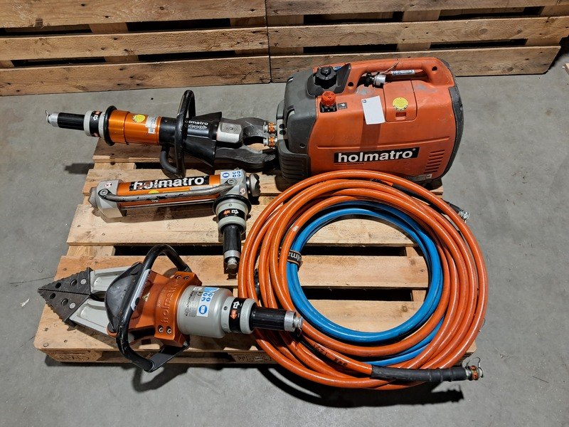 Merk: Holmatro Product: Set hydraulisch redgereedschap Specificaties: Hydraulische spreider Model: SP 4240 C Serienummer: 137609 Bouwjaar: 2005 Hydraulische telescopische ram Model: TR 4350 C Serienummer: 148260 Bouwjaar: 2006 Hydraulische knipschaar Model: CU 4050C NCT II Serienummer: 1098069HH Bouwjaar: 2011 Hydraulische pomp Model: DPU 31 PC Serienummer: 198592 Bouwjaar: 2009 Inclusief • 2x hydrauliekslang