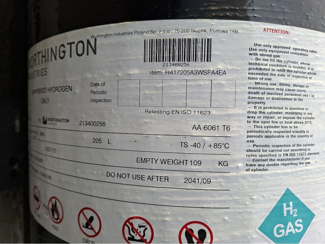 Merk: Worthington Industries Product: Composiet gecomprimeerde waterstofcilinder Afmeting: 205 liter