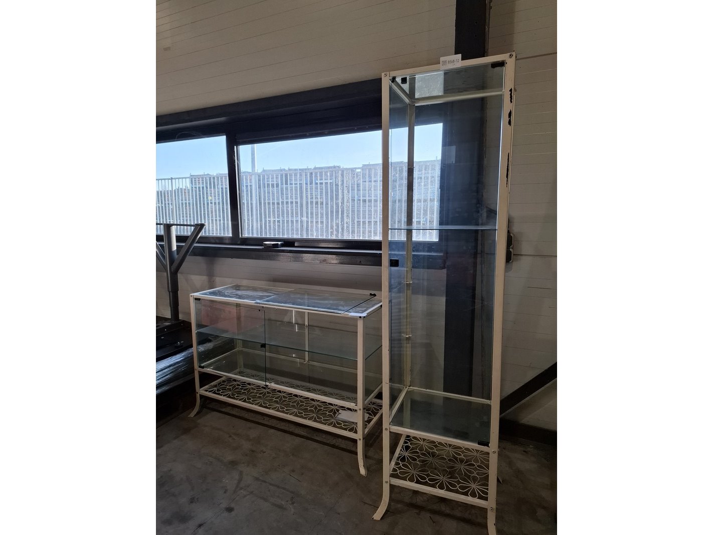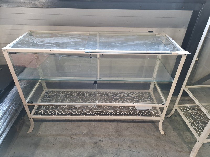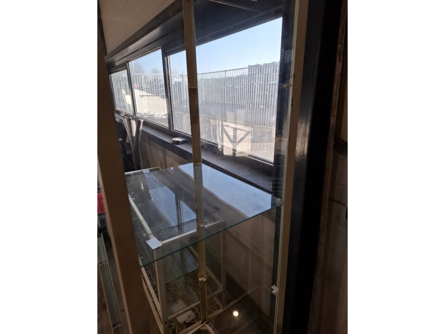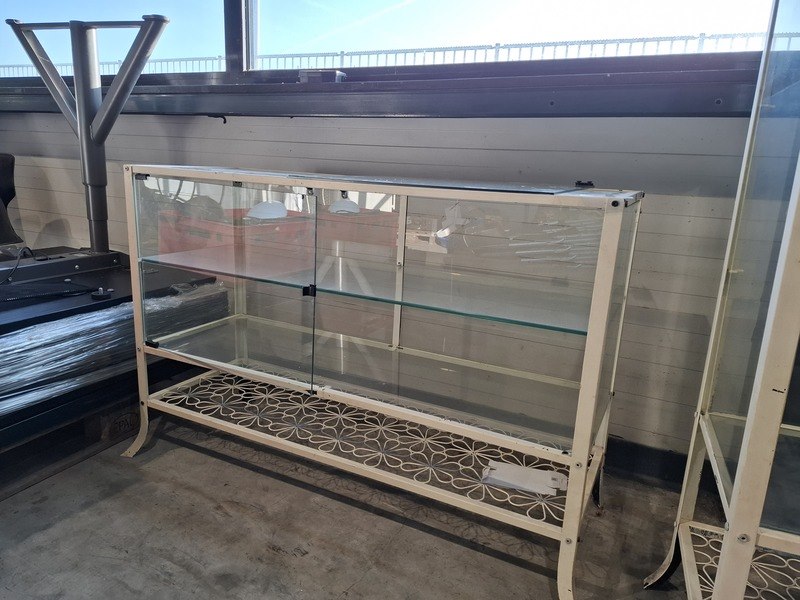 Product: Vintage vitrine Specificaties: 1x hxbxd ca. 180x45x40cm, 1x zij glasplaat ontbreekt, exclusief sleutel 1x hxbxd ca. 80x119x40cm, 1x deur er los bij