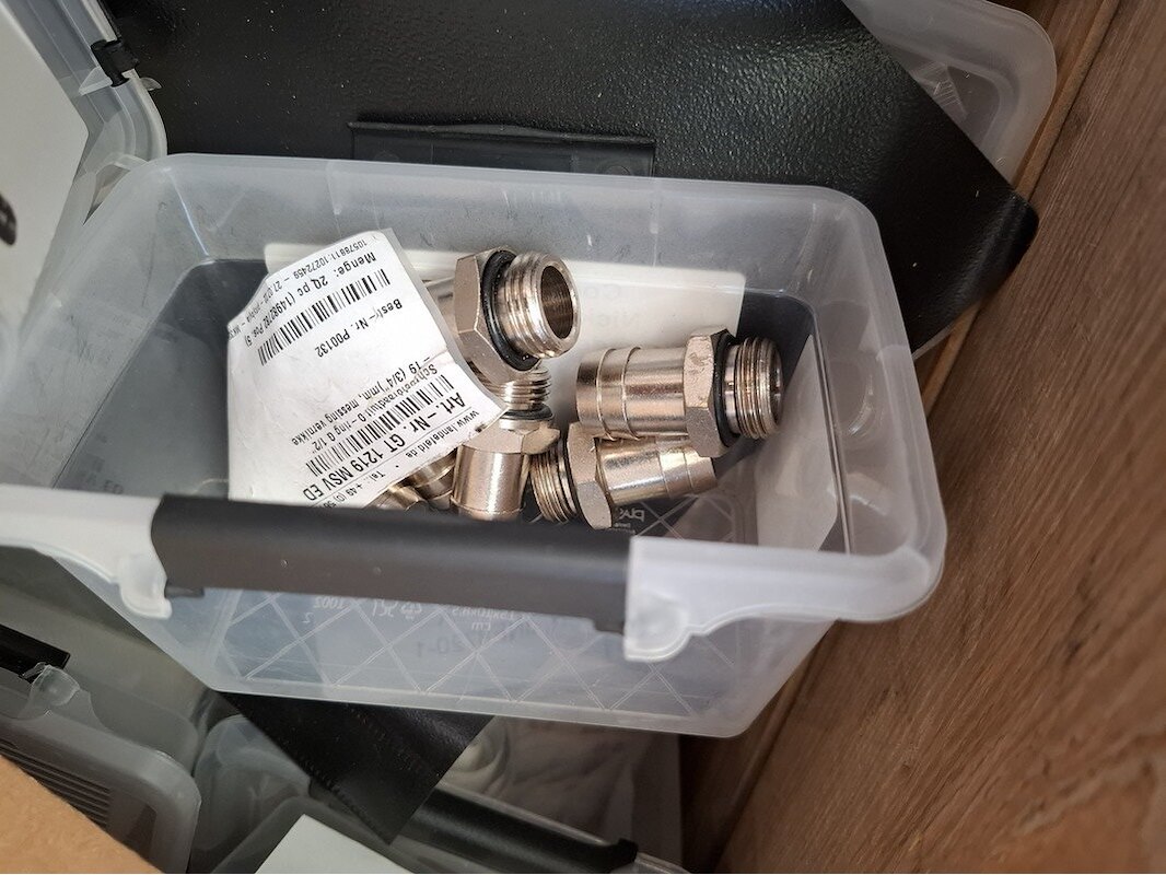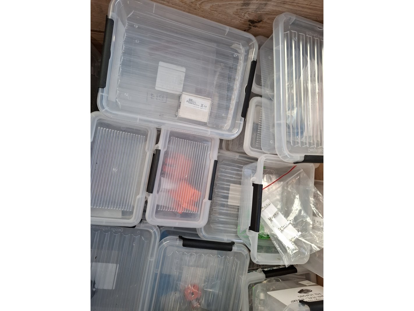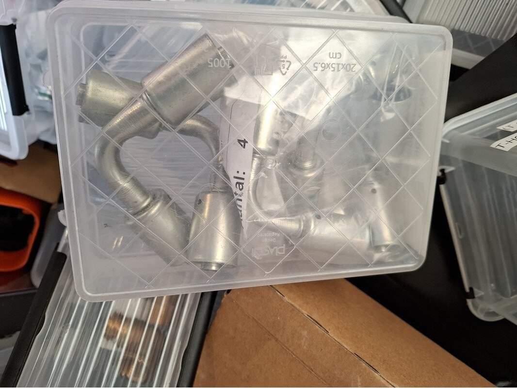 Product: Partij divers ijzerwaar Specificaties: inclusief diverse kunststof onderdelen, stekkers etc.