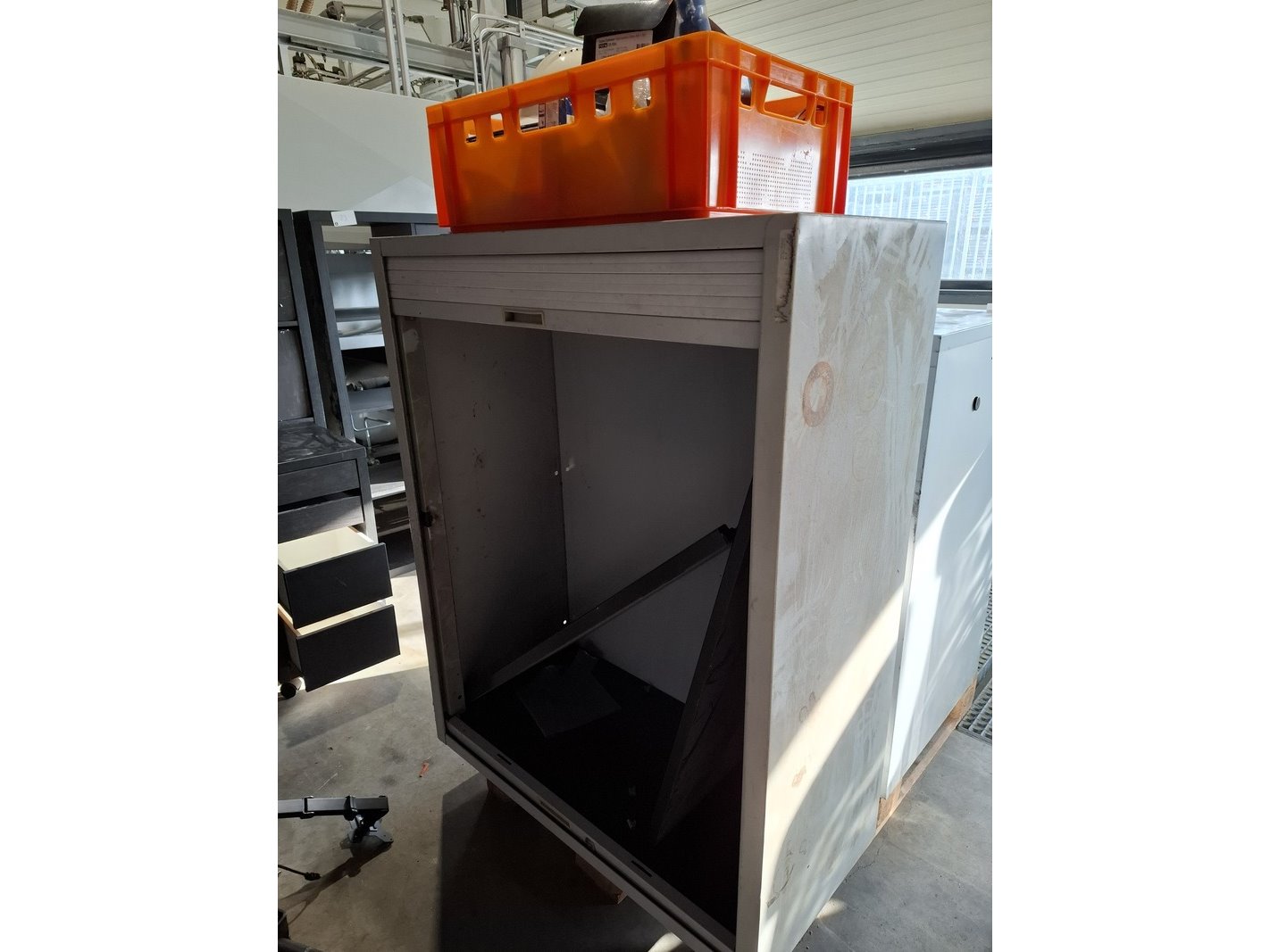 Product: Divers werkplaatsinventaris Specificaties: 2x ladekast hxbxd ca. 101x47x62cm lameldeurkast hxbxd ca. 96x120x45cm