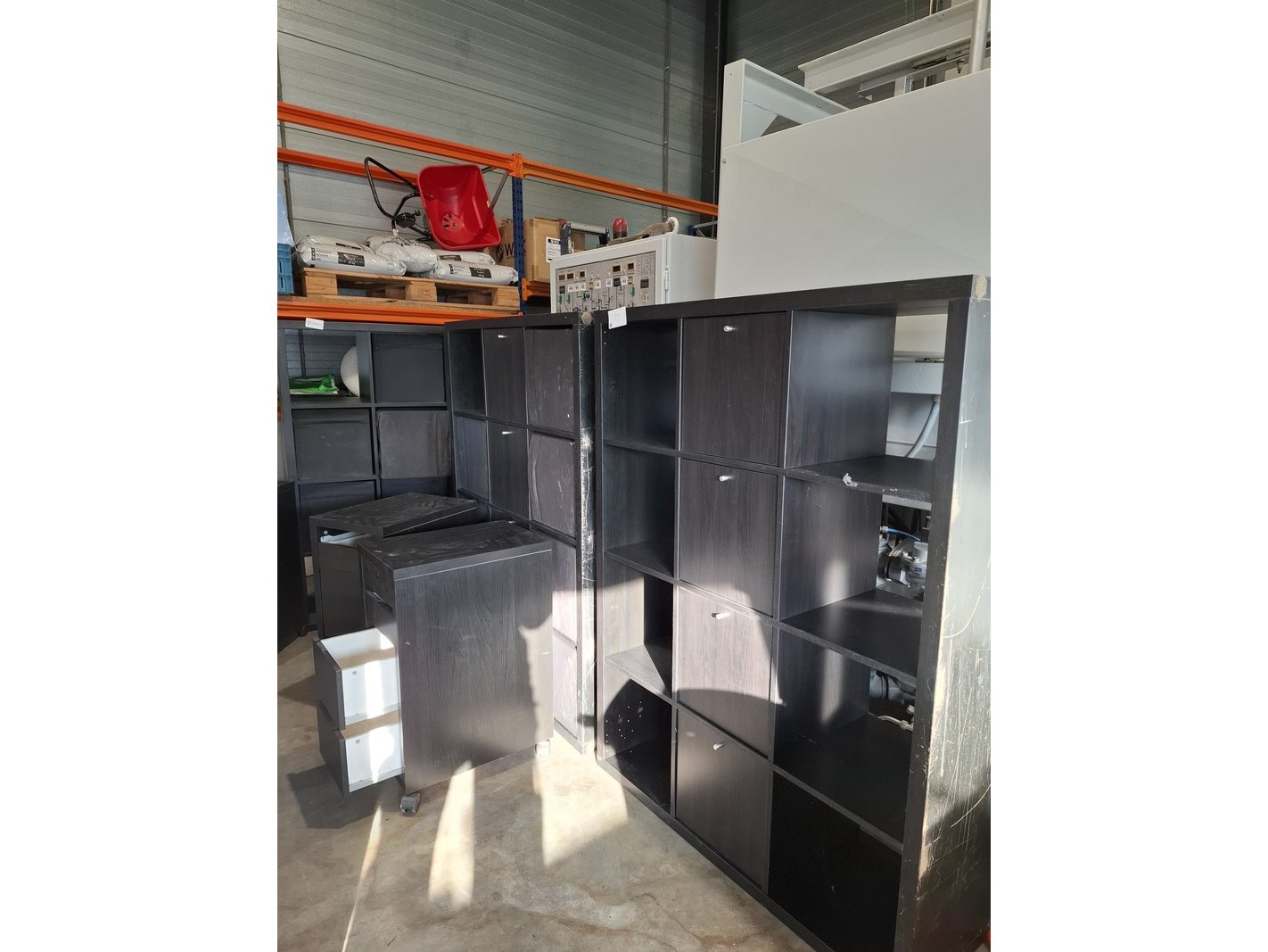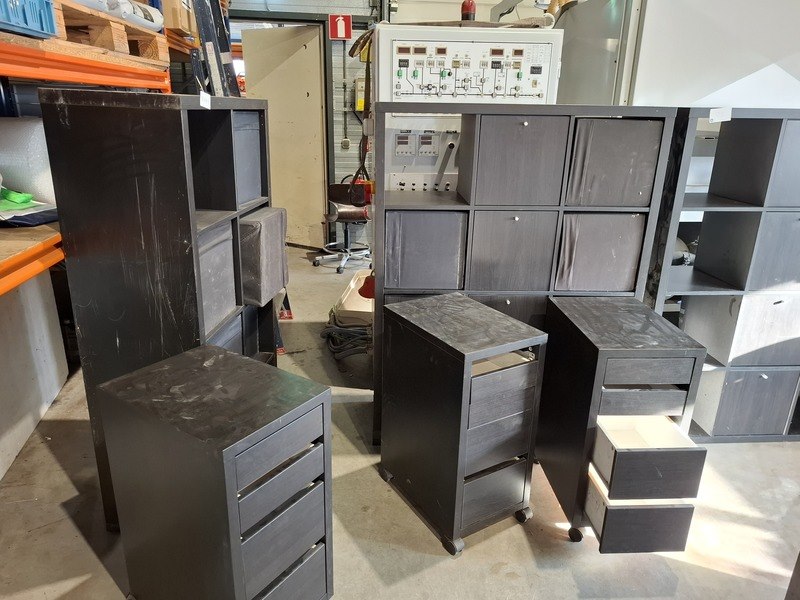 Product: Divers kantoorinventaris Specificaties: bestaande uit o.a. : 2x vakkenkast hxbxd ca. 147x112x39cm 1x vakkenkast hxbxd ca. 147x76cmx39cm 3x verrijdbaar ladeblok