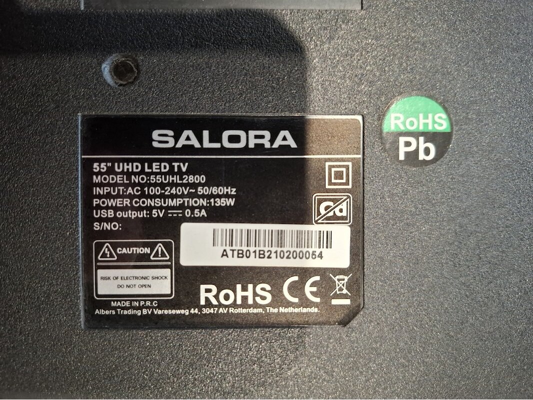 Merk: Salora Product: UHD Led televisie Specificaties: 230V, inclusief afstandsbediening