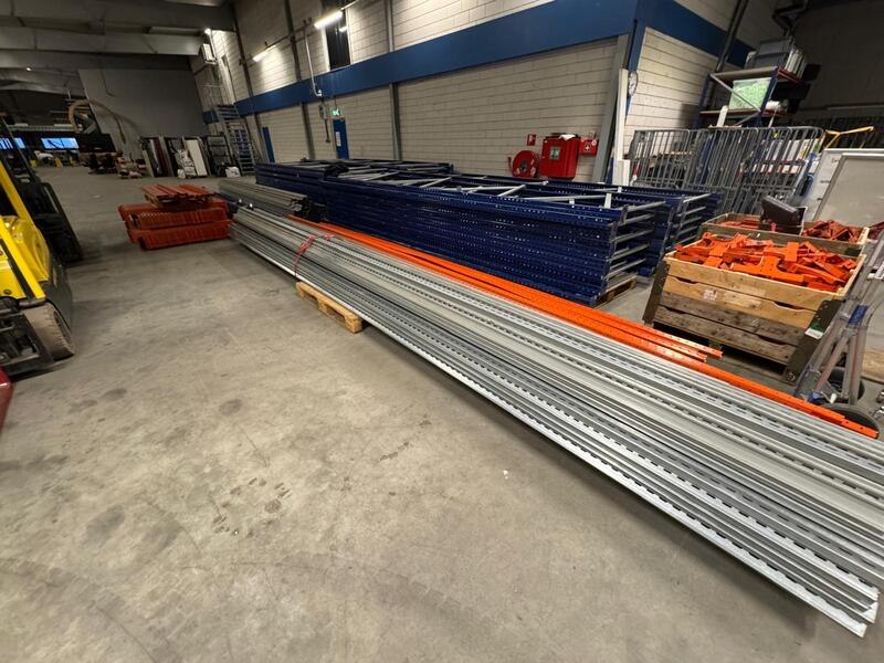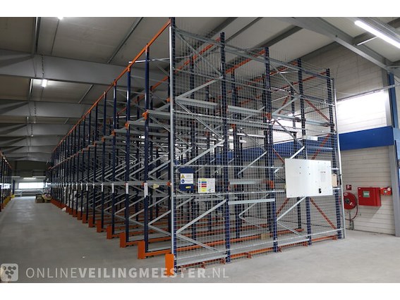 Product: Doorschuifstelling voor pallets Afmeting: totale afmeting hxbxd ca. 525x2900x560/695cm BouwJaar: 2016 Conditie: Gebruikt Specificaties: Bestaande uit: 15x doorschuifstelling hxd ca. 525x560cm, 5x doorschuifstelling hxd ca. 525x695cm en 2x legbordstelling breedte vak ca. 104/125cm Inclusief aanrijbeveiliging Kavel is reeds gedemonteerd. Voor een beter beeld van deze kavel vragen wij u gebruik te maken van onze kijkdag.