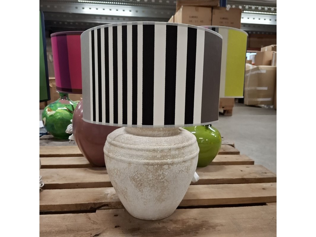 Merk: o.a. Designers Guild Product: Lamp Materiaal: Keramiek Conditie: Nieuw Specificaties: Lampenvoeten met kappen van Designers Guild stoffen