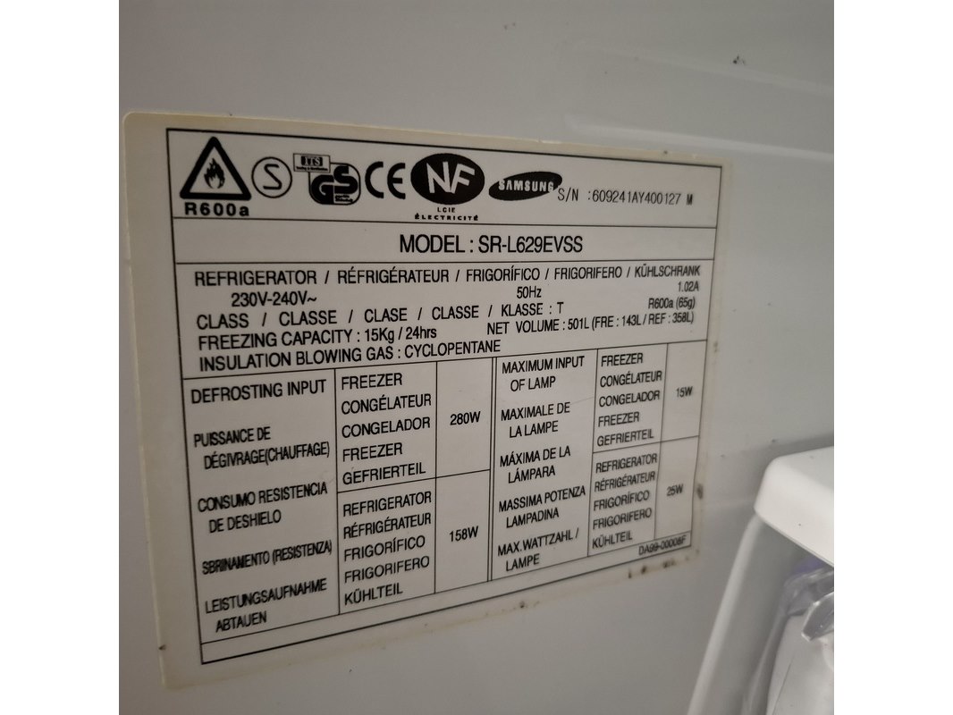 Merk: Samsung A+++ Product: SEMI Amerikaanse koelkast Kleur: Grijs / Chroom Conditie: Gebruikt Specificaties: Grote Semi amerikaanse koelkast. A+++ Met Water dispenser Literinhoud koeling: 358 liter. Literinhoud vriezer: 143 liter. Werkend getest!