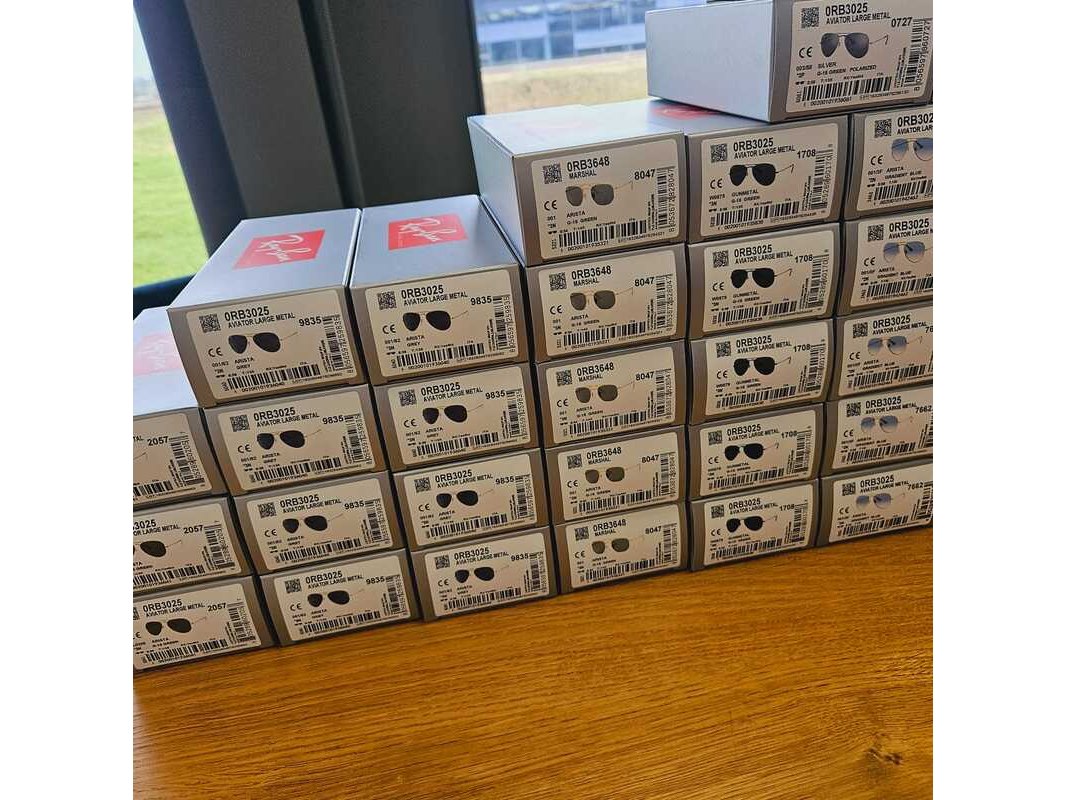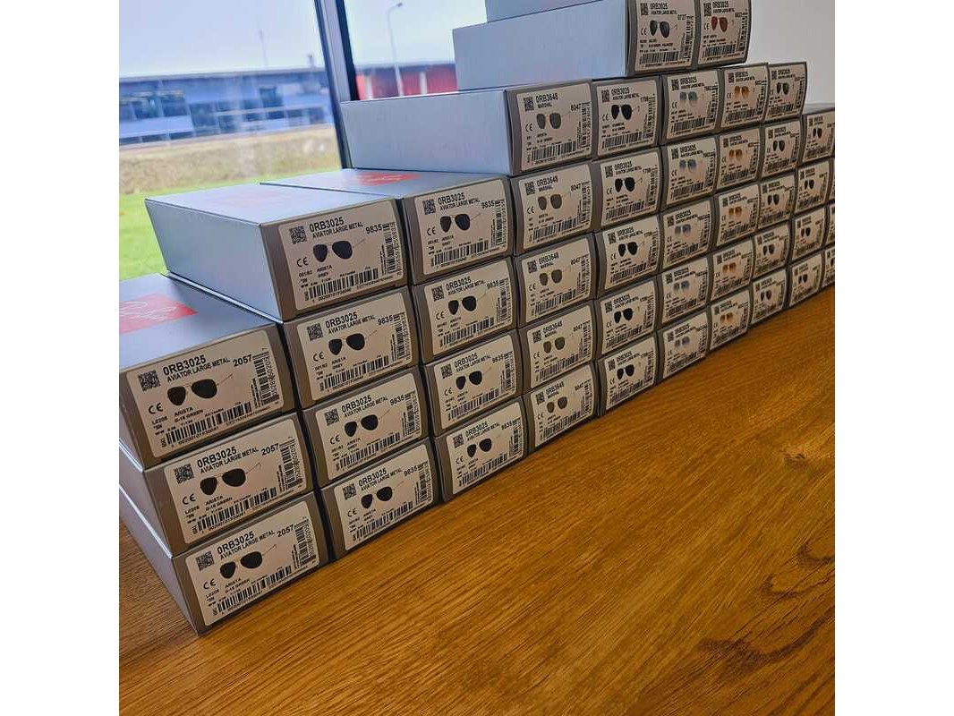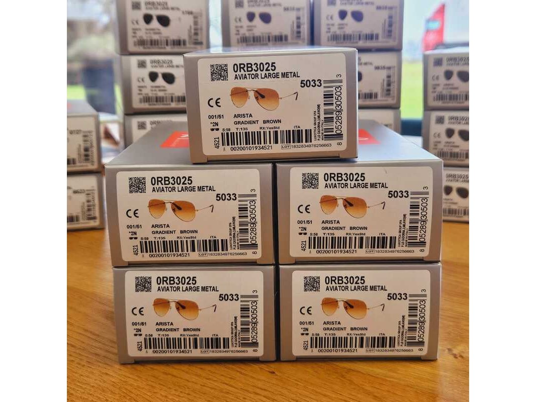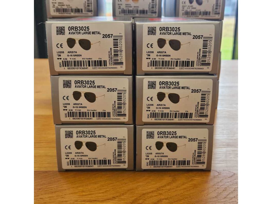 Merk: Rayban Product: Zonnebrillen Conditie: Nieuw Specificaties: Dit betreft een partij met 50 zonnebrillen van Rayban. Allemaal nieuw in doos, inclusief etui en toebehoren. Bevat: - 8 x Rayban Aviator Large Metal Arista Grey. - 5 x Rayban Aviator Large Metal Arista Gradient Blue. - 7 x Rayban Aviator Large Metal Arista Green. - 5 x Rayban Aviator Large Metal Gunmetal Green. - 5 x Rayban Aviator Large Metal Silver Green. - 5 x Rayban Aviator Large Metal Arista Gradient Brown. - 1 x Rayban Aviator Large Metal Arista Brown Polarized. - 1 x Rayban Aviator Large Metal Silver Green Polarized. - 3 x Rayban Outdoorsman Arista Green. - 4 x Rayban Outdoorsman Black Green. - 5 x Rayban Marshal Arista Green. - 1 x Rayban Marshal Black Gradient Grey.