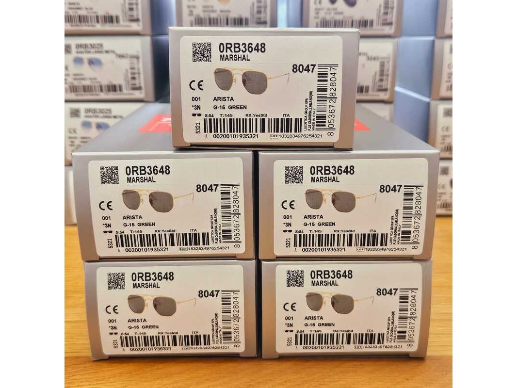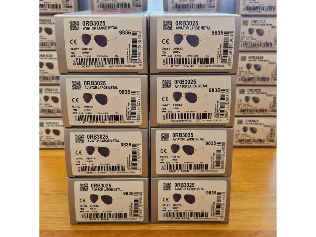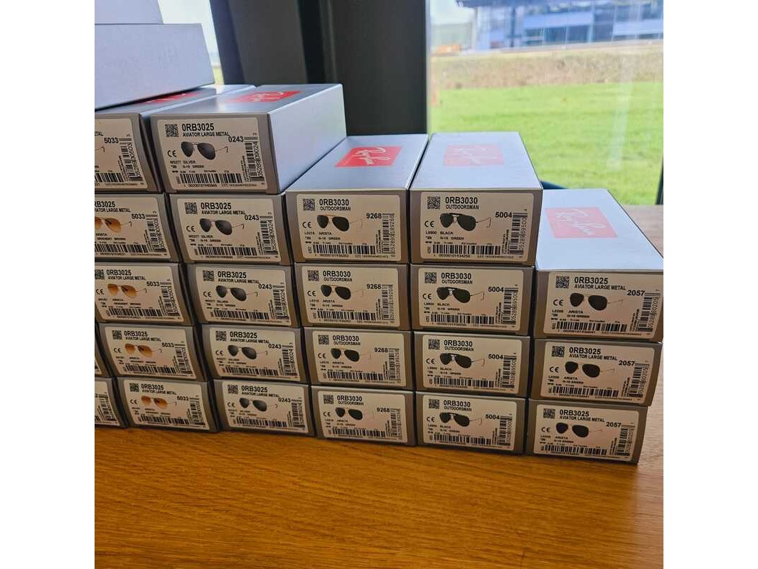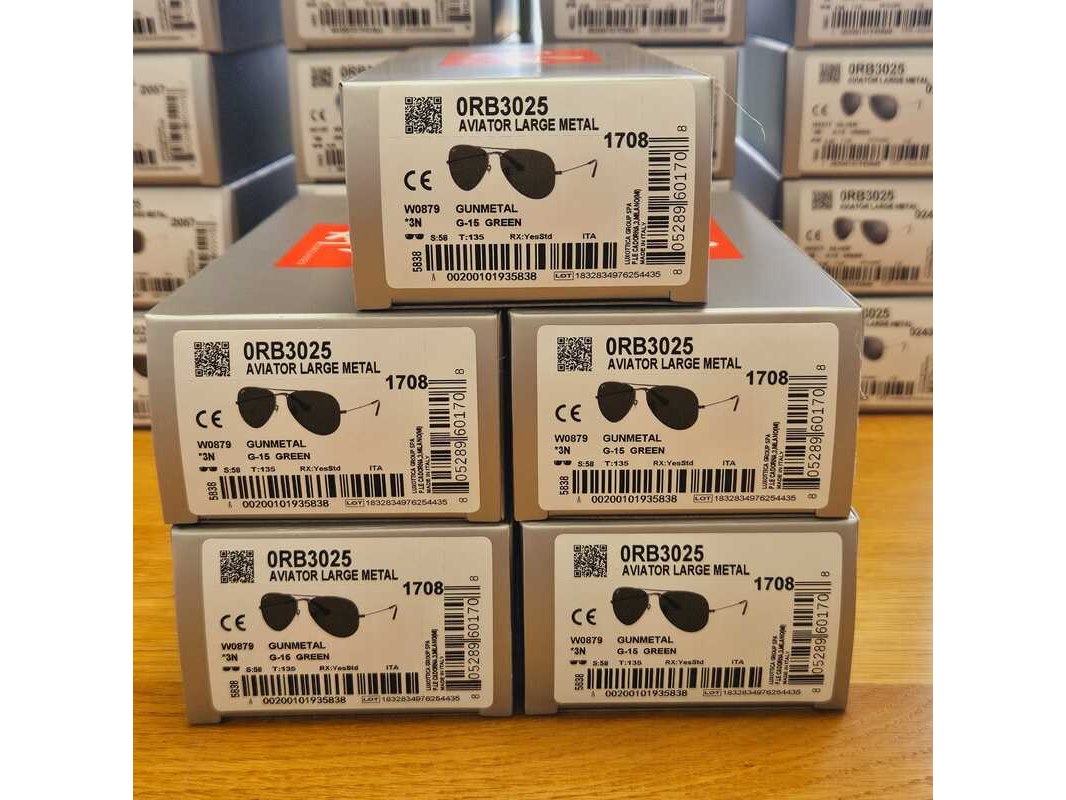 Merk: Rayban Product: Zonnebrillen Conditie: Nieuw Specificaties: Dit betreft een partij met 50 zonnebrillen van Rayban. Allemaal nieuw in doos, inclusief etui en toebehoren. Bevat: - 8 x Rayban Aviator Large Metal Arista Grey. - 5 x Rayban Aviator Large Metal Arista Gradient Blue. - 7 x Rayban Aviator Large Metal Arista Green. - 5 x Rayban Aviator Large Metal Gunmetal Green. - 5 x Rayban Aviator Large Metal Silver Green. - 5 x Rayban Aviator Large Metal Arista Gradient Brown. - 1 x Rayban Aviator Large Metal Arista Brown Polarized. - 1 x Rayban Aviator Large Metal Silver Green Polarized. - 3 x Rayban Outdoorsman Arista Green. - 4 x Rayban Outdoorsman Black Green. - 5 x Rayban Marshal Arista Green. - 1 x Rayban Marshal Black Gradient Grey.