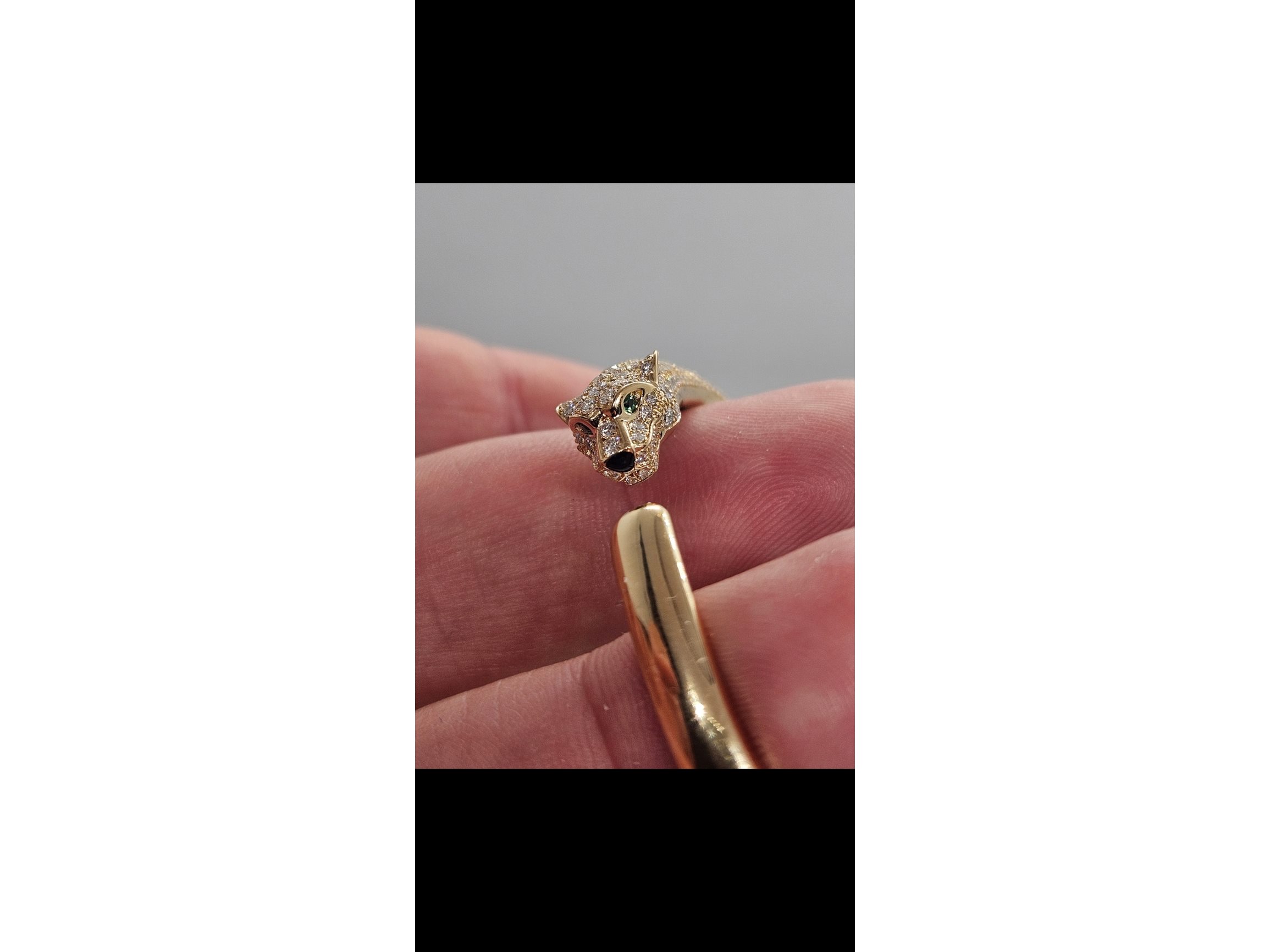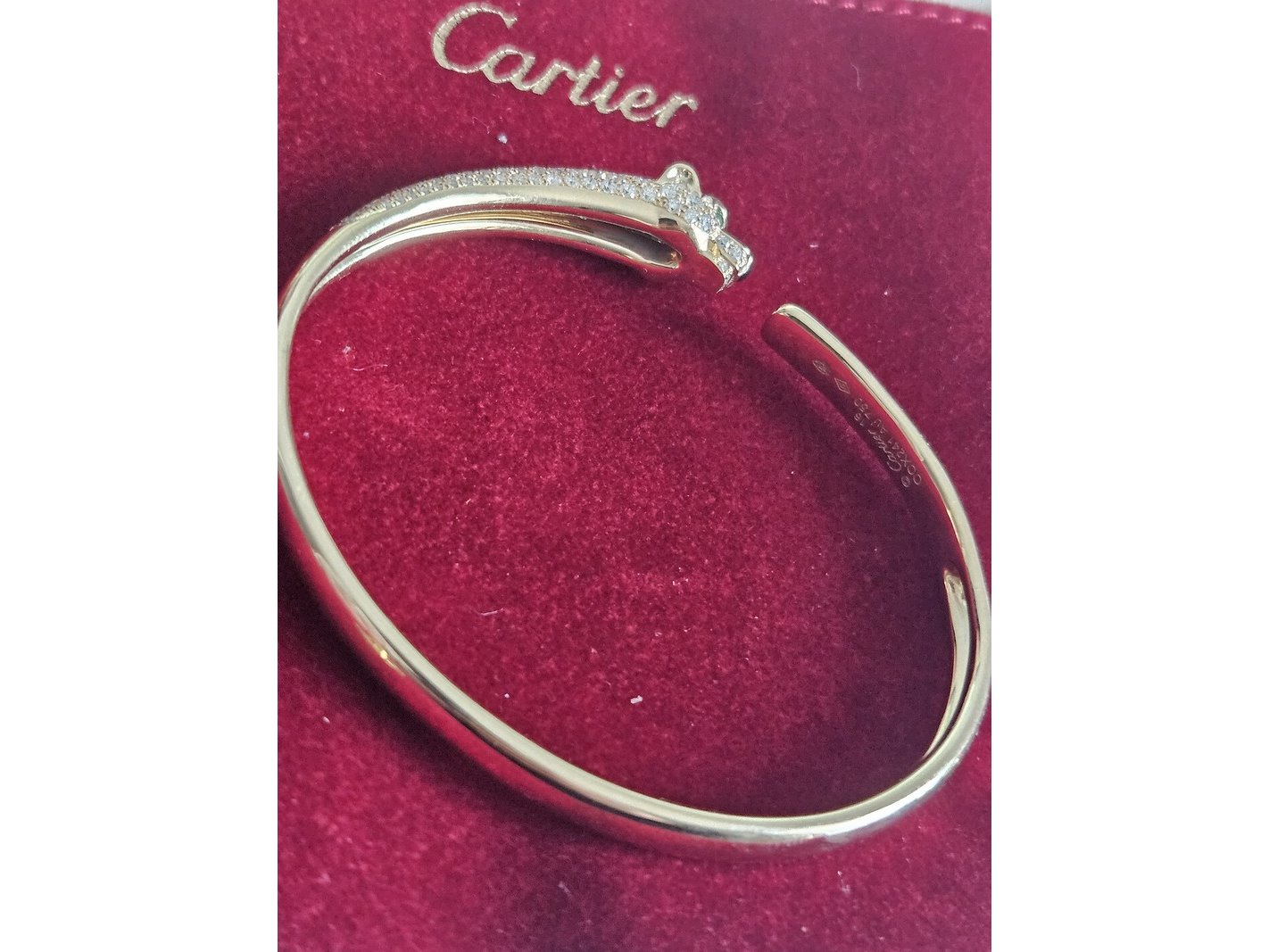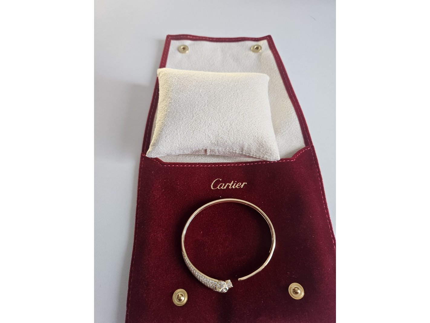 Merk: Cartier Product: Armband Materiaal: Goud Afmeting: 16 BouwJaar: 2025 Conditie: Gebruikt Specificaties: Cartier 18k gouden halve diamanten cheeta armband, maat 16, vervaardigd met ingelegde diamanten van 18k goud, prachtige inleg van een luipaardkop met diamant, edele groene ogen, krachtige fysieke uitstraling, vol luxe. Merk: Cartier Model: Panthère Materiaal: 18k goud Steen: Diamant Maat: 16 Conditie: Zo goed als nieuw Meegeleverd: Binnenbox, Buitenbox, Cartier certificaat, reis etui.