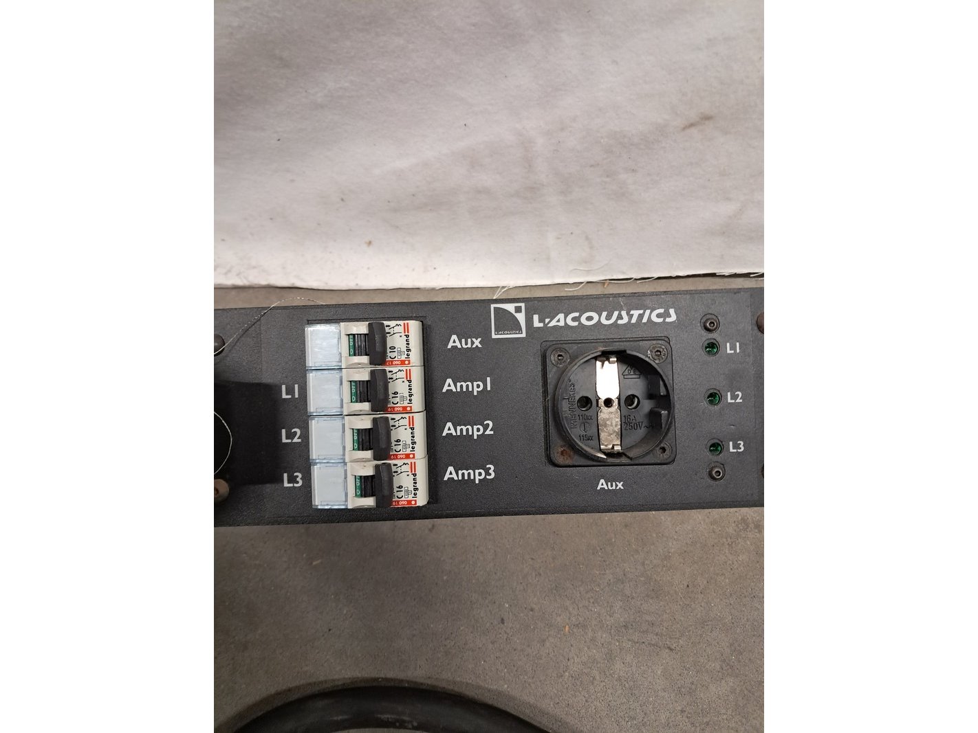 Merk: L acoustics Product: Tour rack Kleur: Zwart Conditie: Gebruikt Specificaties: inc. 2x stroomverdeler