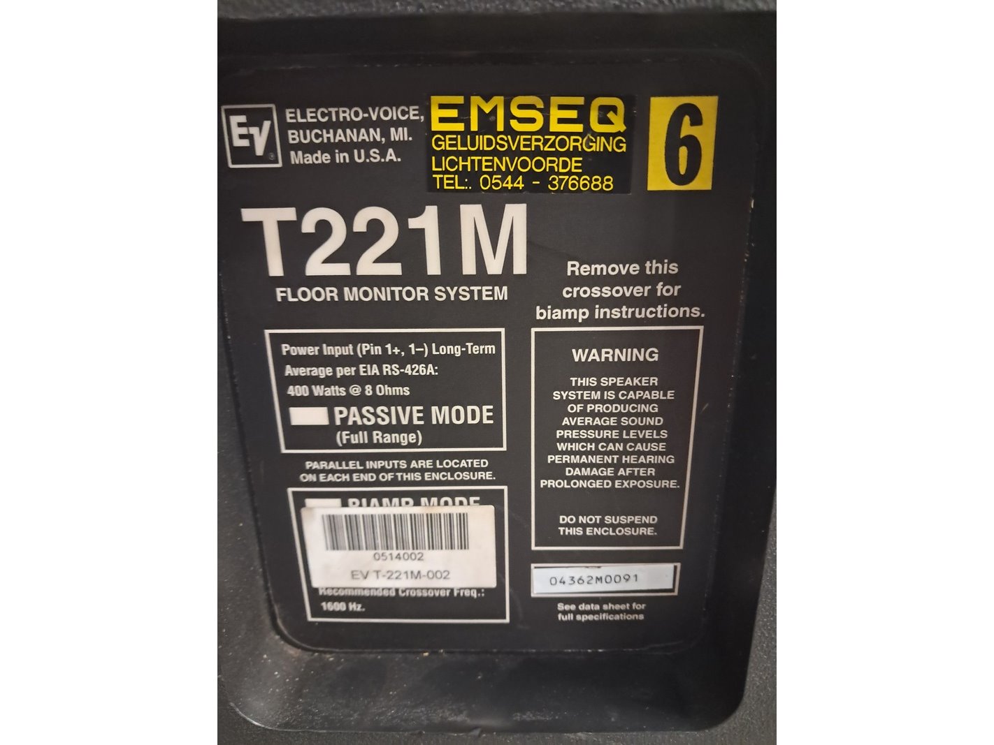 3x monitor/floor speaker, electrovoice, t221m, zwart
