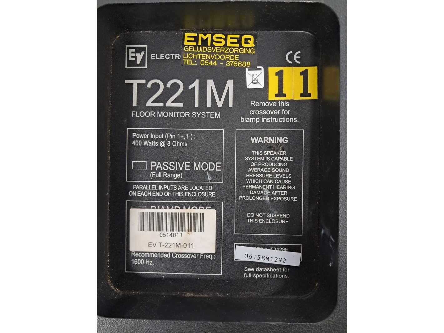 Merk: Electrovoice Product: Monitor/Floor speaker Kleur: Zwart Conditie: Gebruikt Specificaties: 2 in case