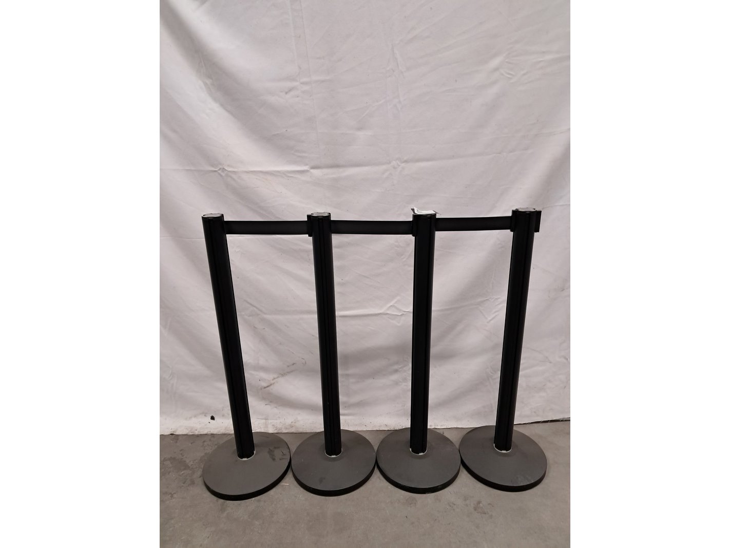 Merk: Showgear Product: Crowd control / Afzetpaaltjes Kleur: Zwart Afmeting: ongeveer 1.05m Hoog Conditie: Gebruikt