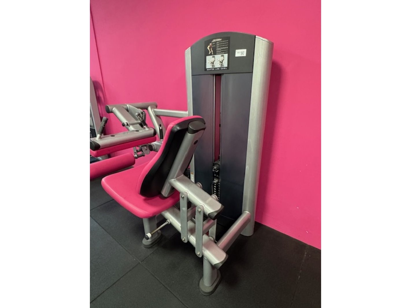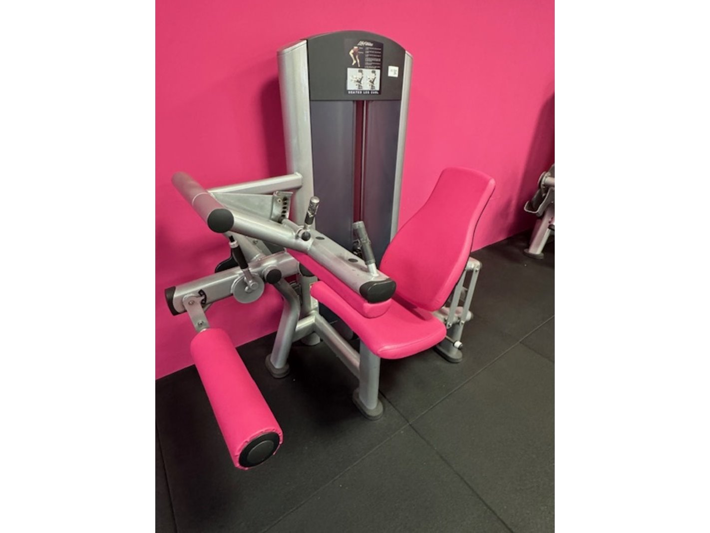 Merk: Life Fitness Product: Seated Leg Curl Afmeting: ca. 157x107x163 cm Specificaties: Totaal gewicht 302kg, gewichten 145kg