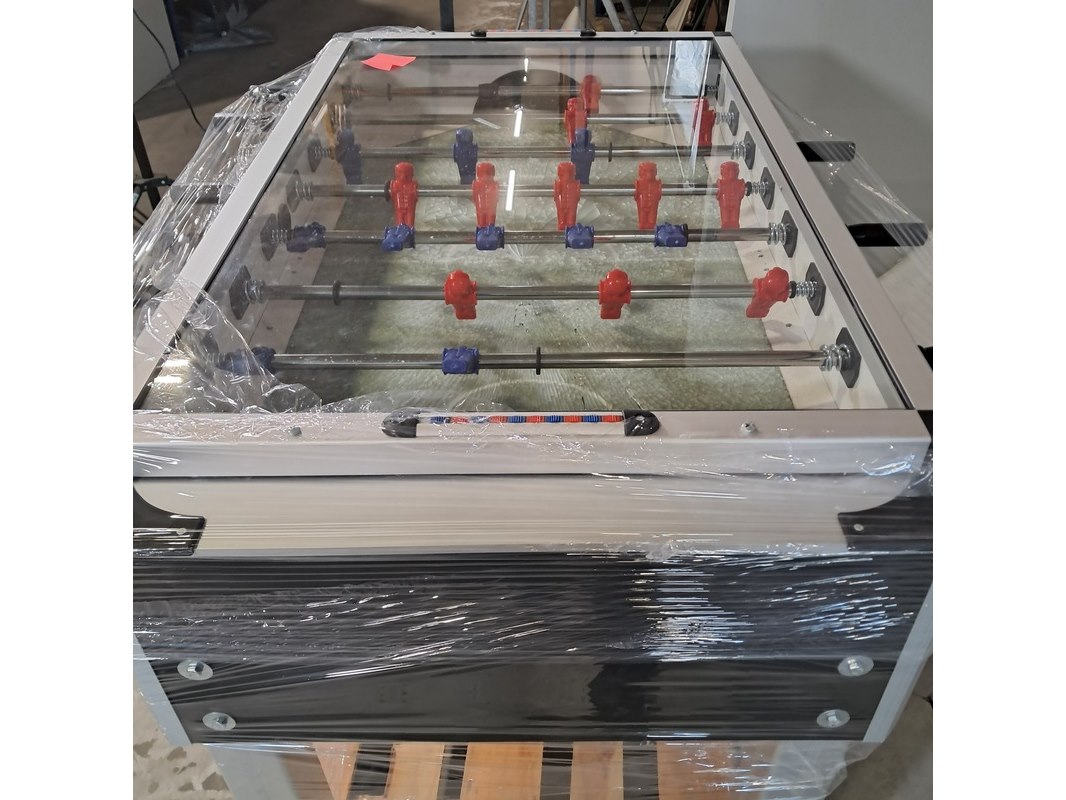 Merk: Pegasi Forza Product: Voetbaltafel Afmeting: lxbxh ca. 135x94x95 cm Conditie: Defect Specificaties: Defect: glazenbodemplaat is gebroken.