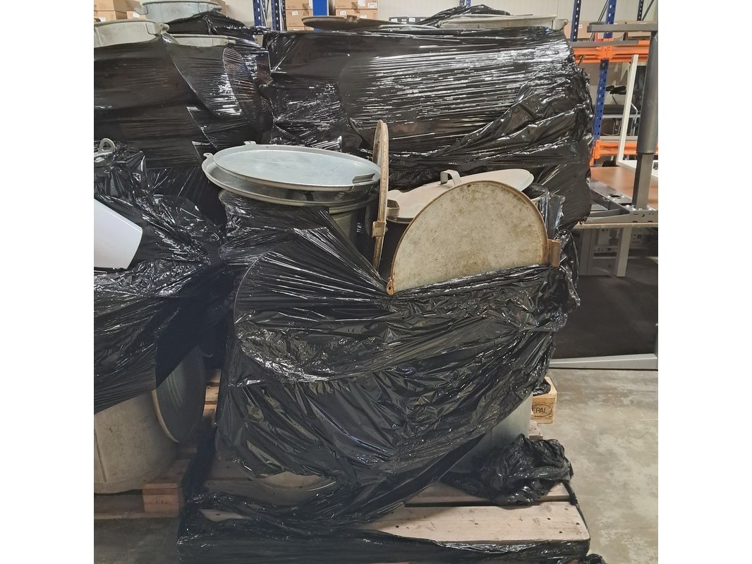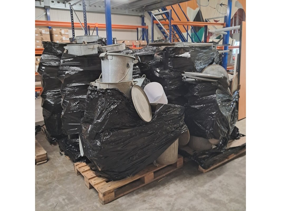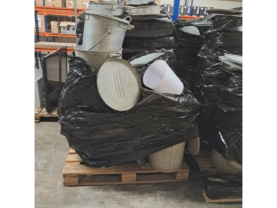 Product: Partij afvalbakken Conditie: gebruikt Specificaties: Technische staat en compleetheid onbekend. Exclusief pallets.