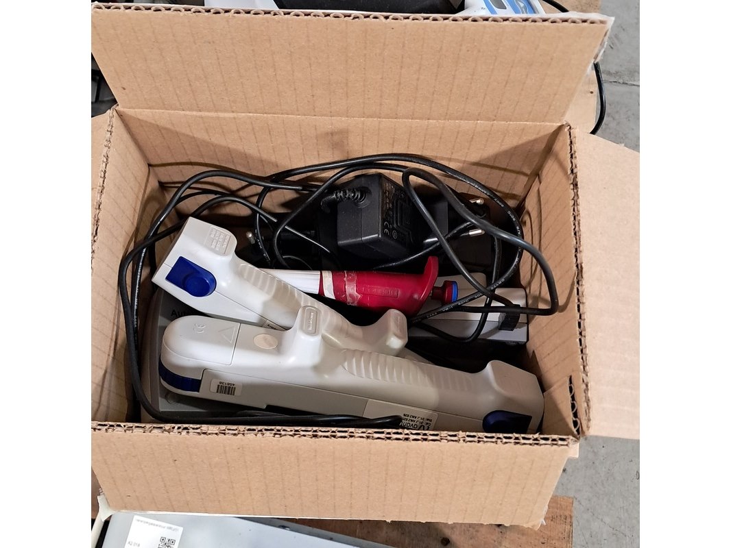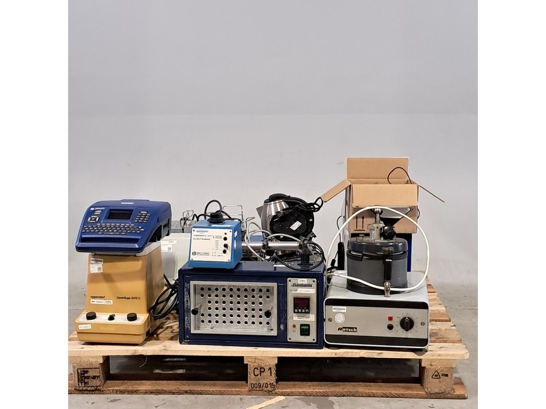 Product: Laboratoriumapparatuur en diversen Conditie: gebruikt Specificaties: Bestaande uit o.a. brady printer, samplers, waterkoker, radio, etc Technische staat en compleetheid onbekend. Exclusief pallet.