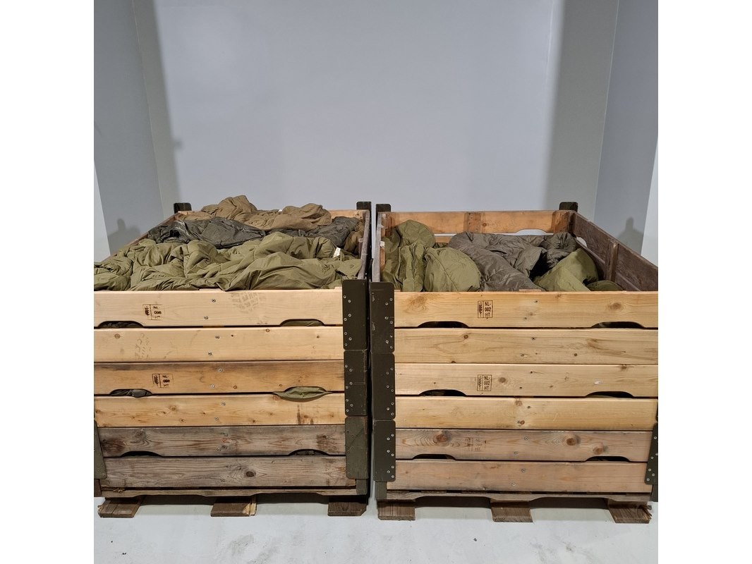 Product: Partij slaapzakken Afmeting: Diverse maten Conditie: gebruikt Specificaties: Bestaande uit 2x palletkist met slaapzakken.