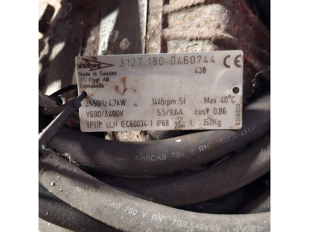 Merk: Flygt Product: Afvalwaterpomp Conditie: Gebruikt