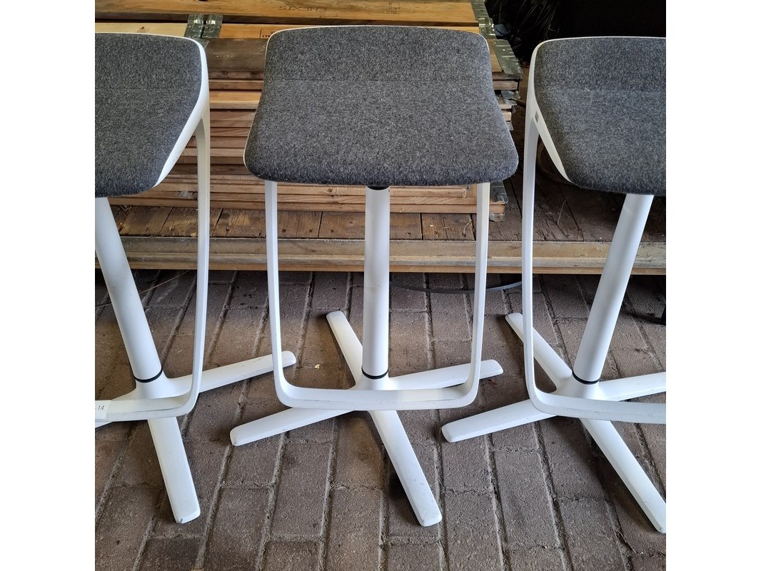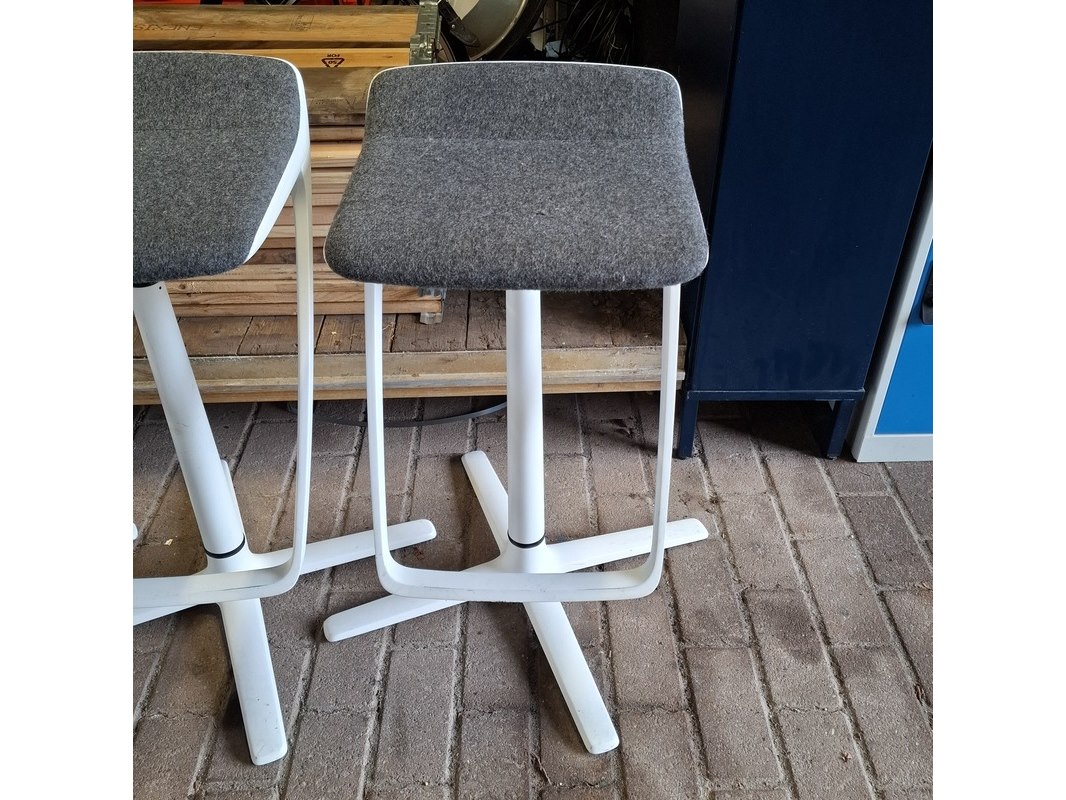 Merk: Interstuhl Product: Barkruk Conditie: Gebruikt Specificaties: In hoogte verstelbaar, minimale hoogte ca. 69 cm, maximale hoogte ca. 83 cm.