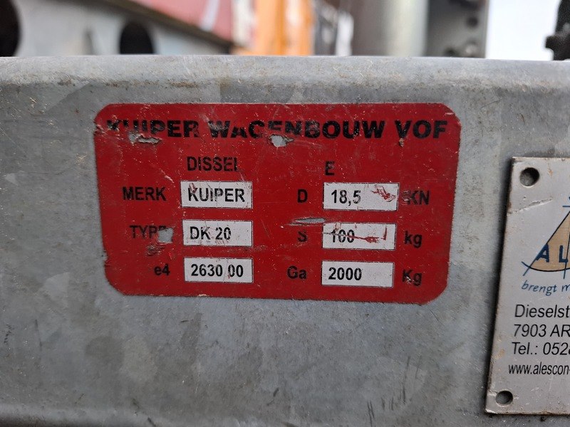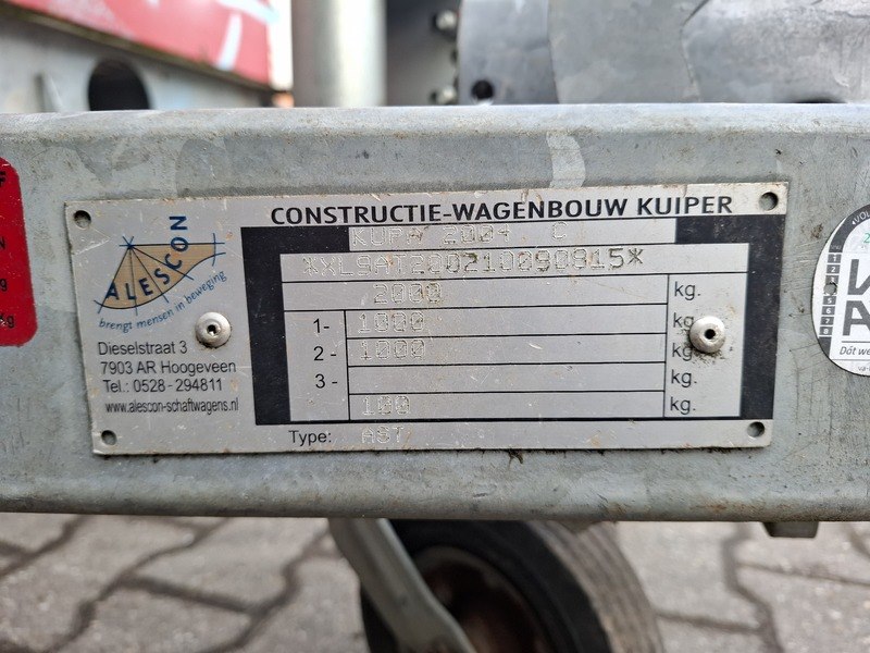 Merk: Kuiper Product: Schaftkeet BouwJaar: 2010 Conditie: gebruikt Specificaties: Basiskenmerken Kenteken: 14-WF-RD Datum eerste toelating: 22-02-2010 Maten & Gewichten Lengte: 435cm excl dissel Breedte: 230cm Hoogte: 280cm Wielbasis: 800 mm Massa rijklaar: 1.225 kg Max. massa: 2.000 kg Laadvermogen: 775 kg
